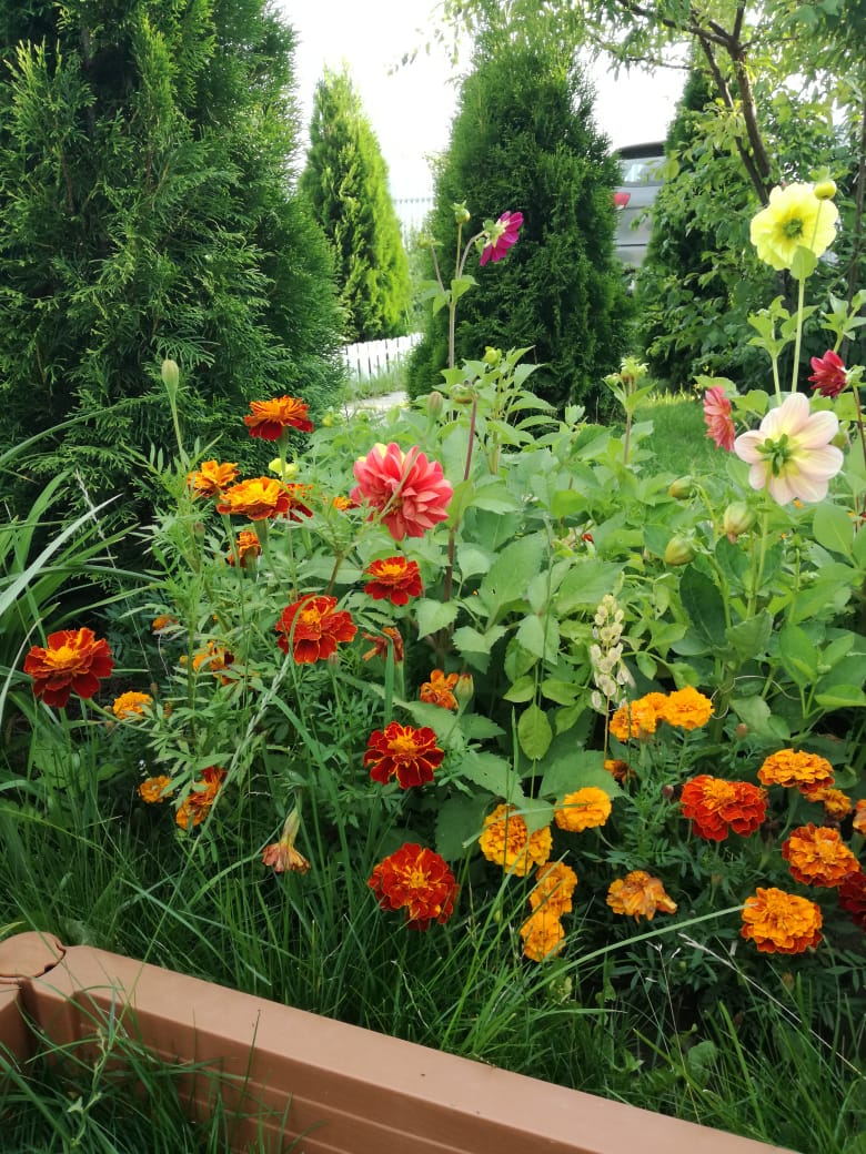 Почти все однолетники не выдержали заморозков. Остались только воспоминания и фото. Мои бархатцы.