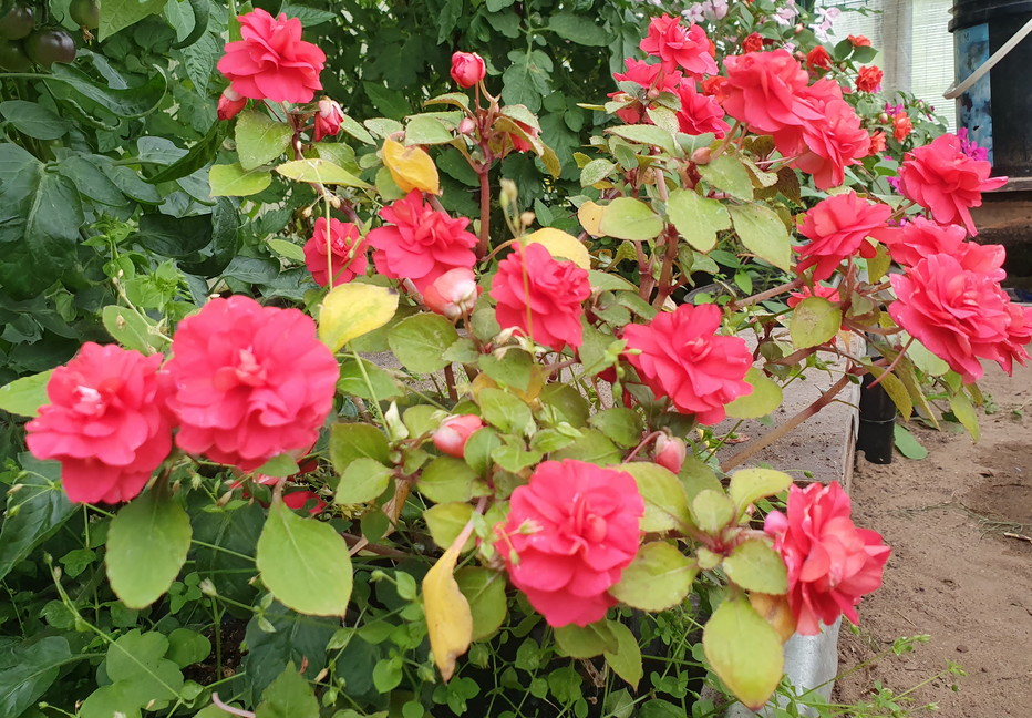 Бальзамины цвели сказочно в сравнении с катарантусами. Мне их пришлось домой утащить все.