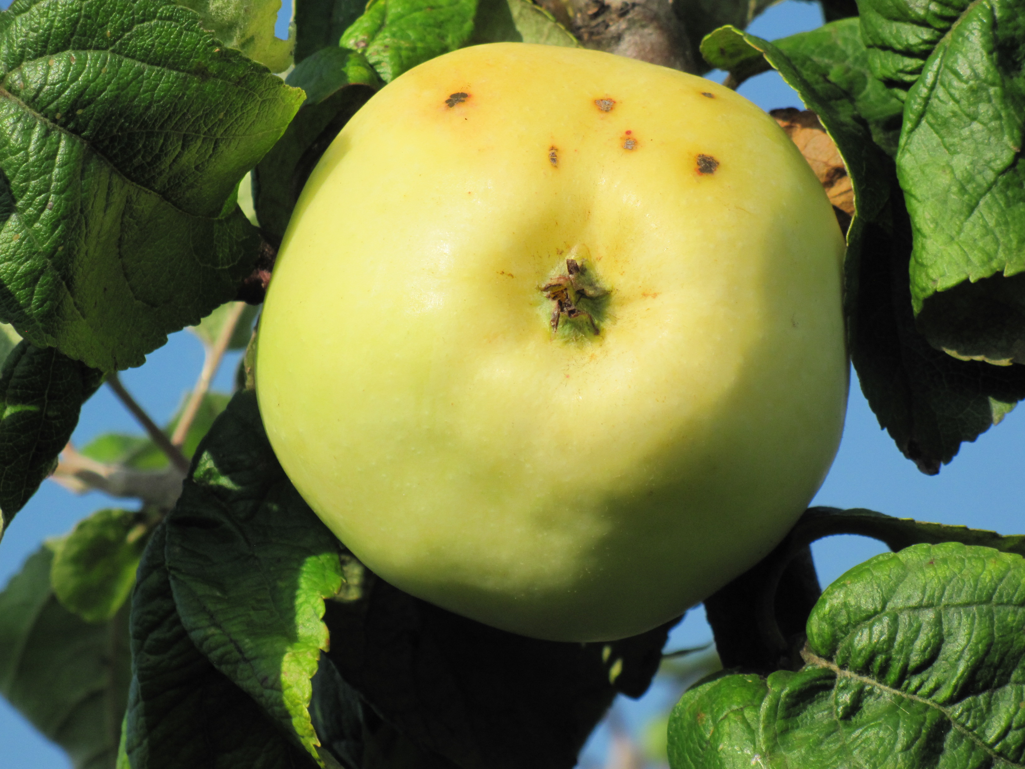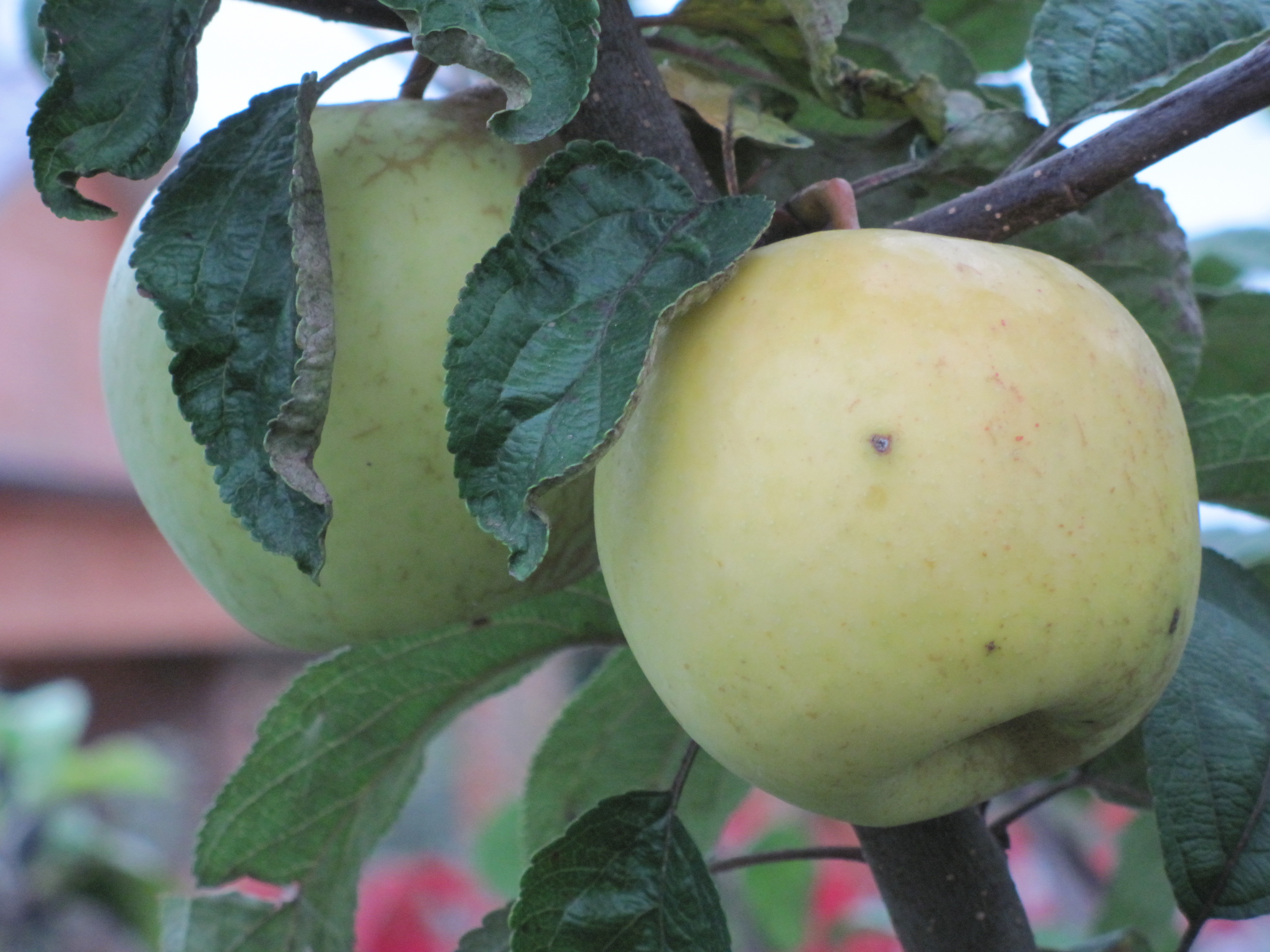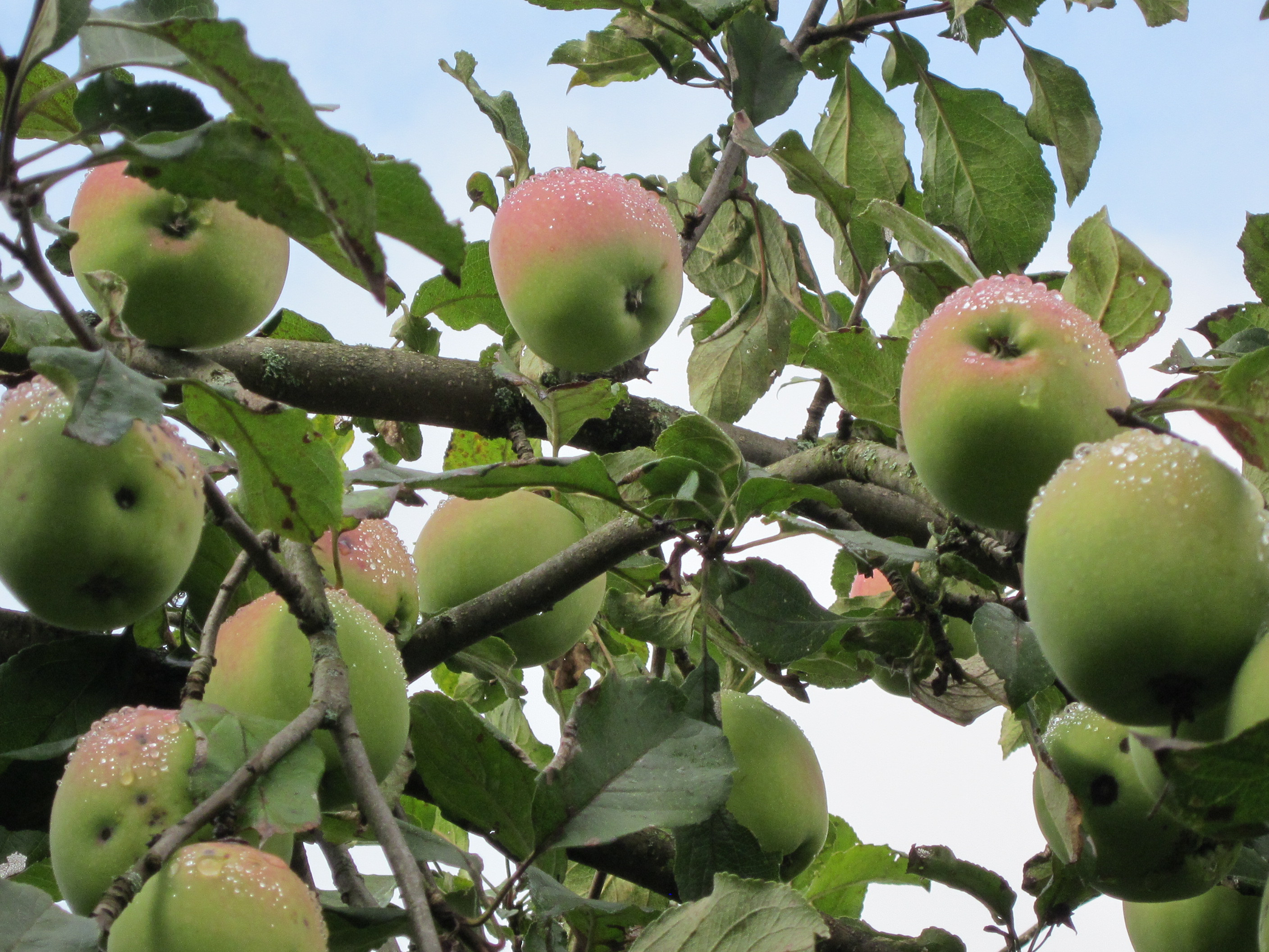 Кстати, на этом фото тоже окраска не совсем типичная. Яблоки обычно просто зелёные с небольшим загаром.