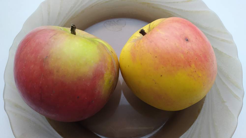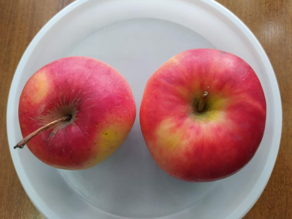 На сегодняшний день среди обоих сортов выбраковка минимальная. Внешний вид у Зорки не очень товарный, кожица слегка сморщилась, но мякоть еще довольно сочная и имеет среднюю плотность. У поляка мякоть примерно такая же. Сахара хорошие. Разница во вкусе уже не очень заметна - у Зорки чуть больше кислот, у Редкрофта присутствует едва различимая горчинка, придающая яблоку легкую пикантность. Пик вкуса каждого сорта явно позади, но вполне могут ещё немного полежать.