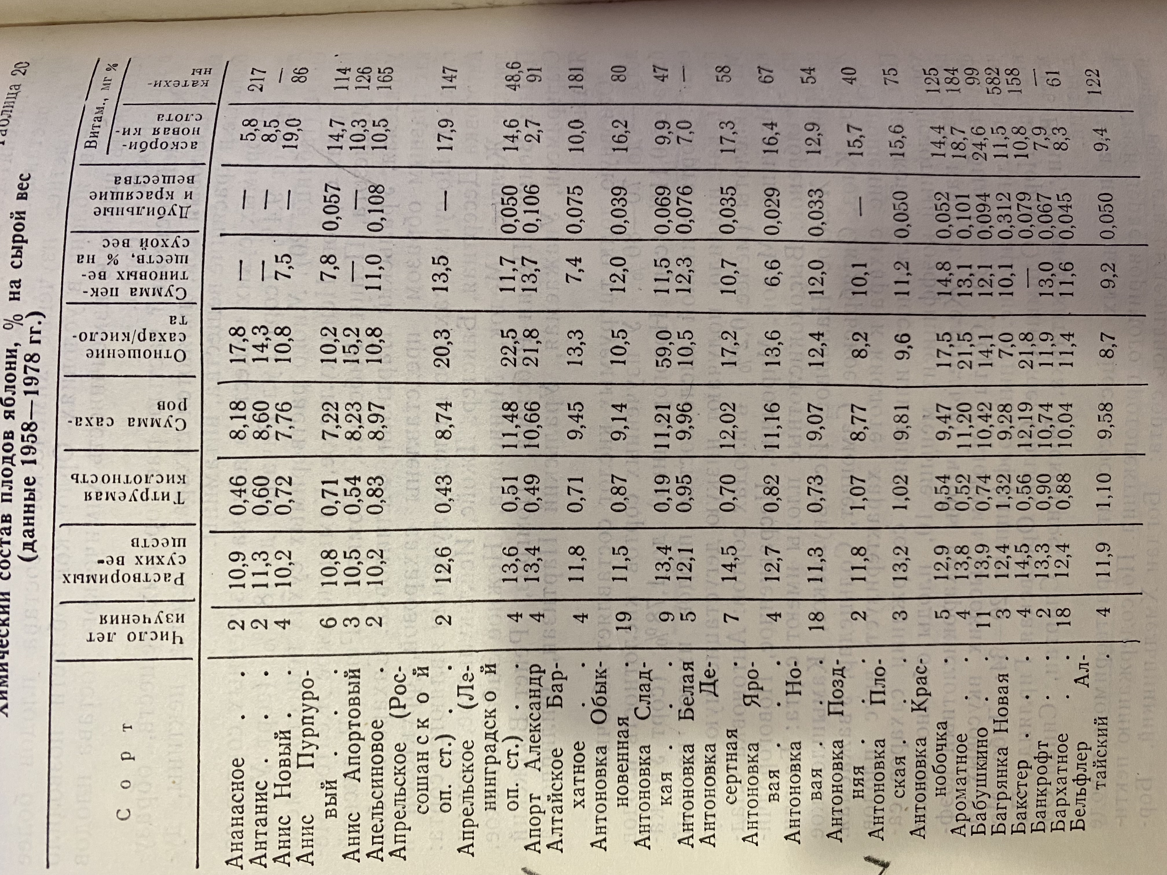 Осень, как я понял по вашим таблицам , это все на сырой вес, в том числе и сахар.А то выше уважаемый Лето утверждал, что это на сухой вес " что 8,8 % сахара в твёрдом веществе Брянского не даёт представления о сладости плодов". Или я не прав? Если вам не трудно , что это за книга, хотелось бы узнать сроки взятия анализа?Ведем разговор на серьезную тему не определившись, сахар в процентах на сырой вес или на сухой, не определили сроки взятия анализа.С уважением.