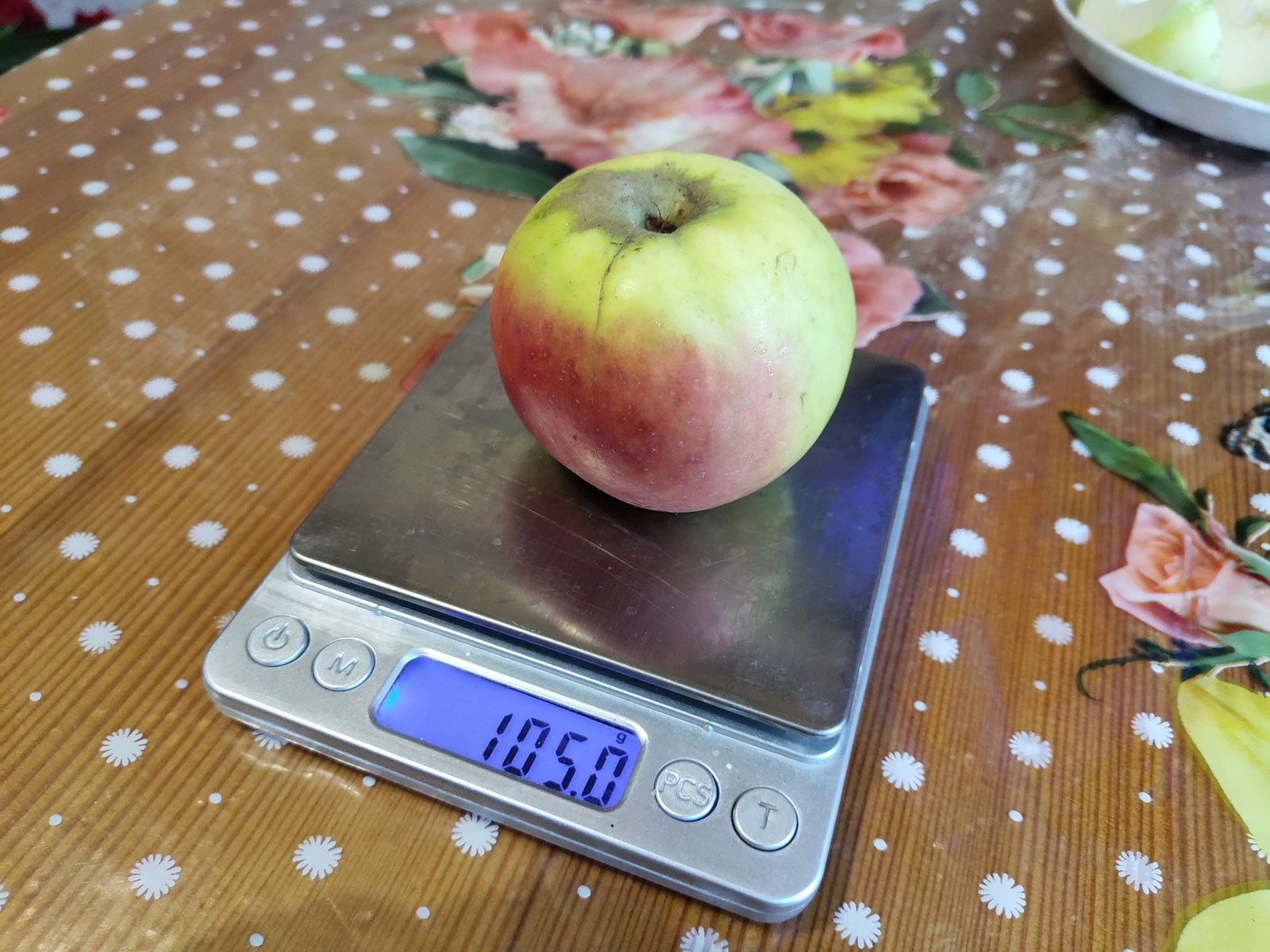Яблоко очень понравилось при первой дегустации (02.10.2021). Второе яблочко употребил 26.10.2021. Консистенция мякоти практически не изменилась - мякоть плотная, скалывающаяся, очень сочная. Кислинка ушла, вкус стал чисто сладким. Тем не менее мне очень понравился. Оценку вкуса оставляю на уровне 4,6 балла, потому как чисто сладкие яблоки не люблю, кислинка должна быть. Потенциал хранения на мой взгляд высокий. В этом году яблоки мелковаты, но из описания ВНИИСПК размер яблок выше среднего, масса в районе 200 г. Как по мне так самое то. Из всего обилия яблок, которые привез от Бориса, по этому году не особо много ярких впечатлений. Поэтому вкратце пробегусь по сортам. Яблоки хранились в пакете на застекленном балконе в абсолютно неприемлемых условиях. Потреблялись также в разное время. На всякий случай еще раз скажу, что практически все сорта были в одном экземпляре. Оценка вкуса отражает мои субъективные впечатления на момент дегустации. Возможно (скорее всего) по некоторым сортам со временем дегустации не угадал.