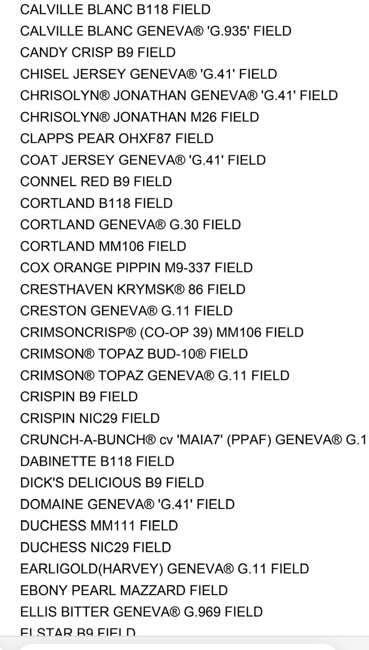 Для примера. Питомники США предлагают Кортленд (любимое яблоко моего американского друга) на 54-118, мм-106, G.30.