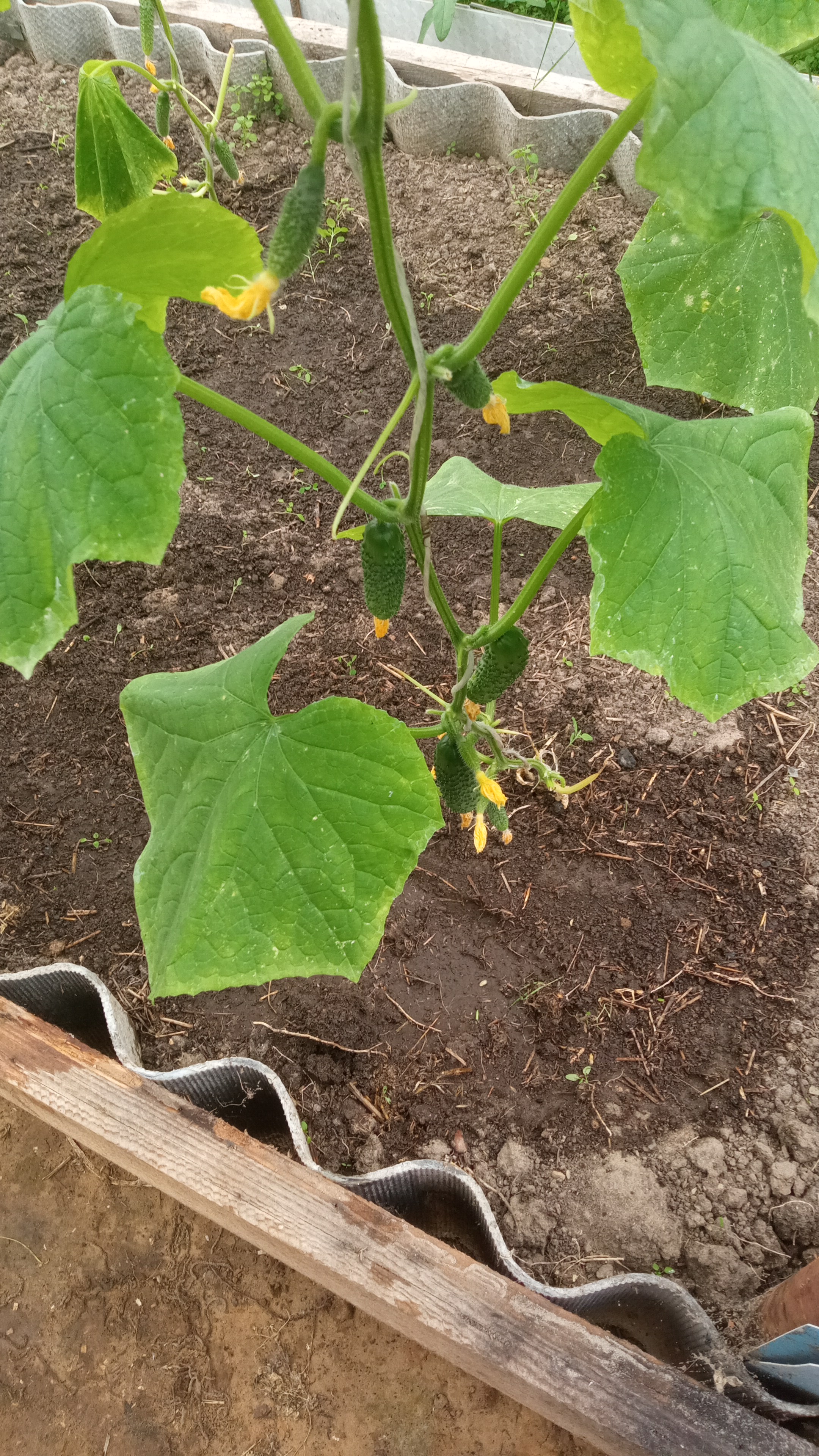 Сегодня посмотрел. У огурцов всё листья подвяли. Макушки растут.