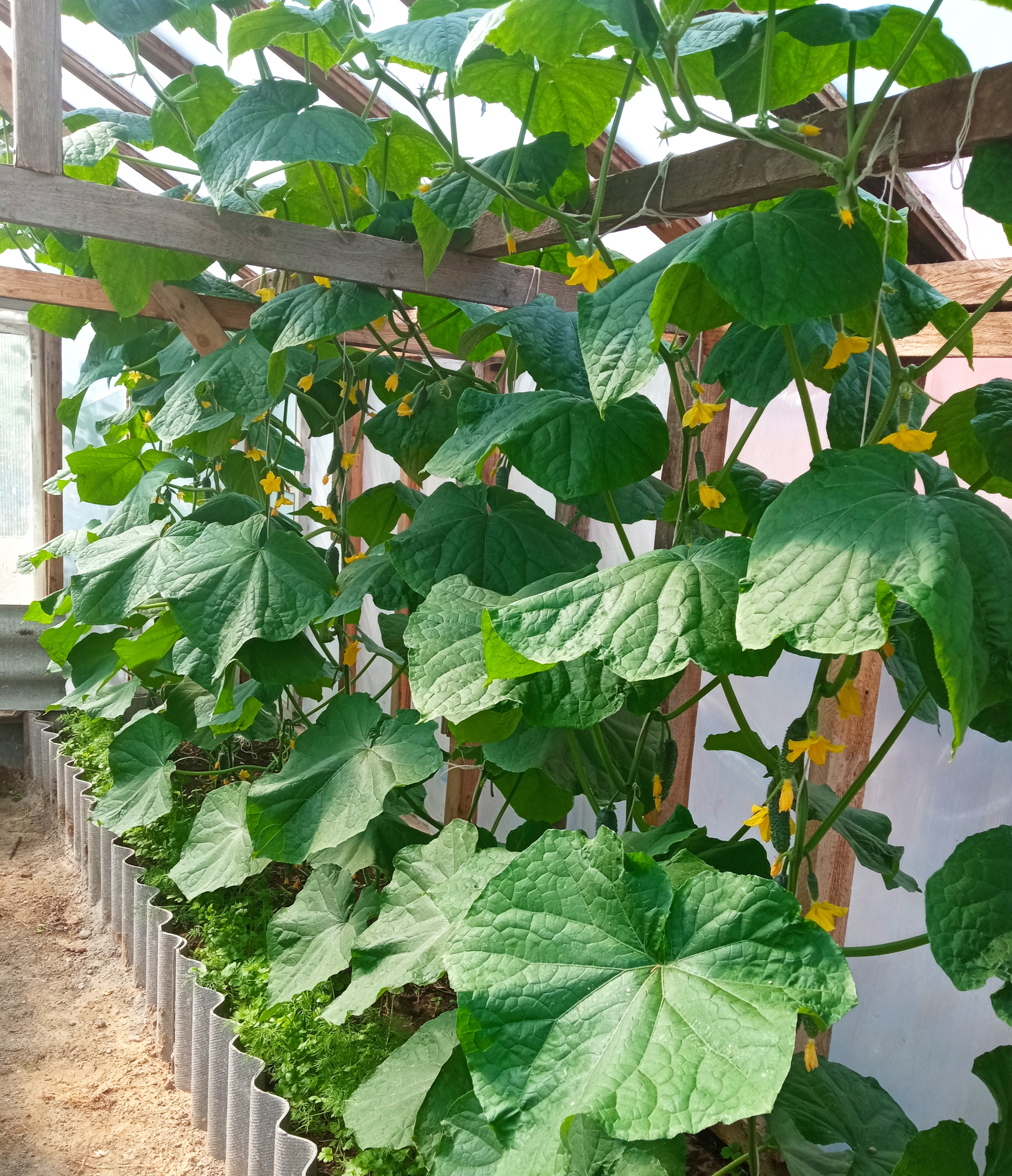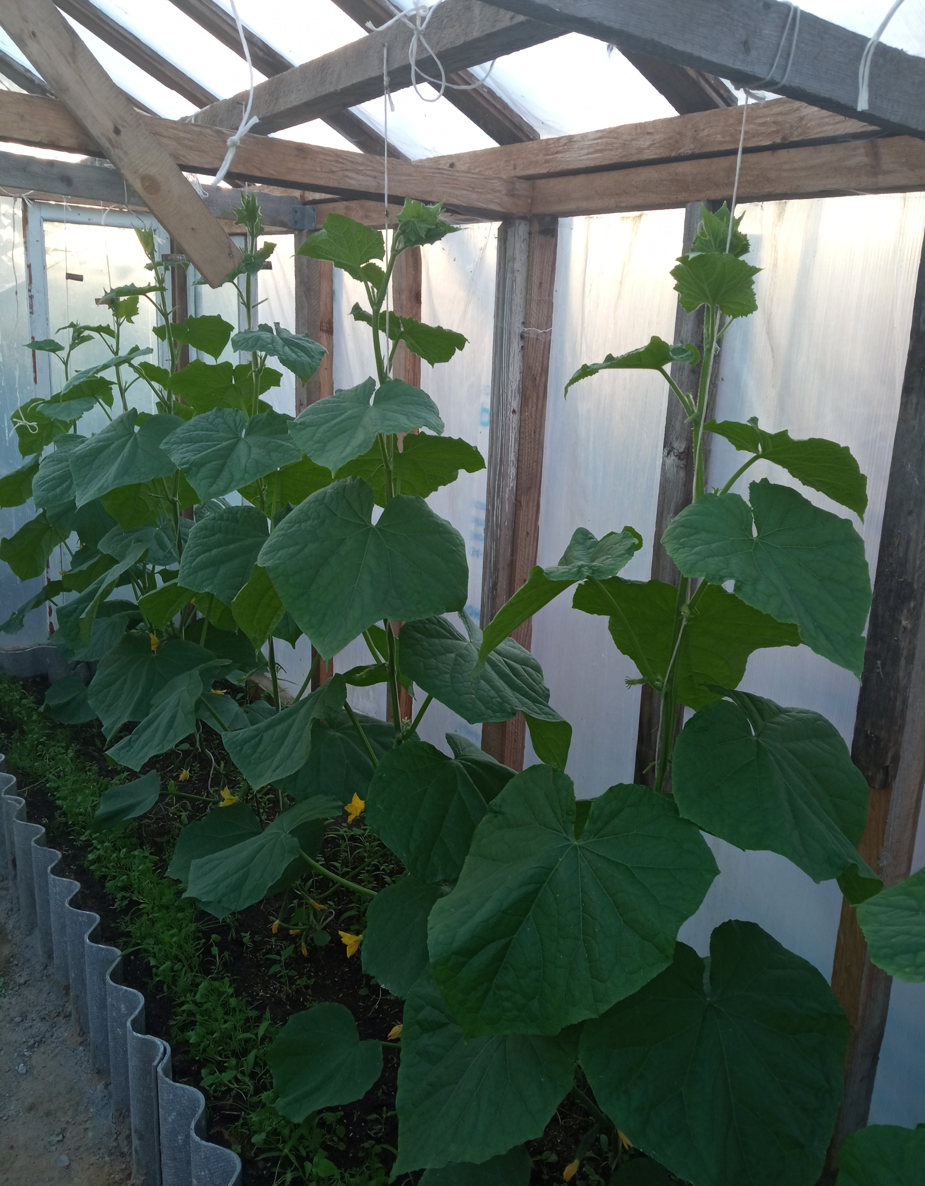 Вот на сейчас вид на огурцы разных видов гибридов в одной из теплиц. Вторая половина под перцами.