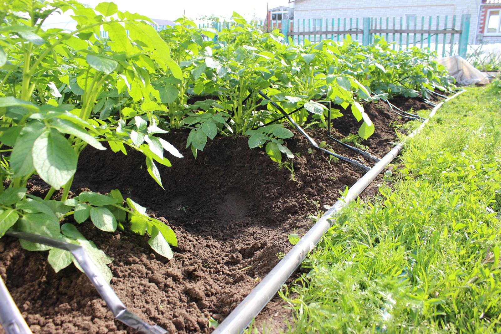 Окучил и разложил капельный полив В следующие выходные первая обработка от фитофторы. Погода стоит нежаркая и дождливая - самое время.