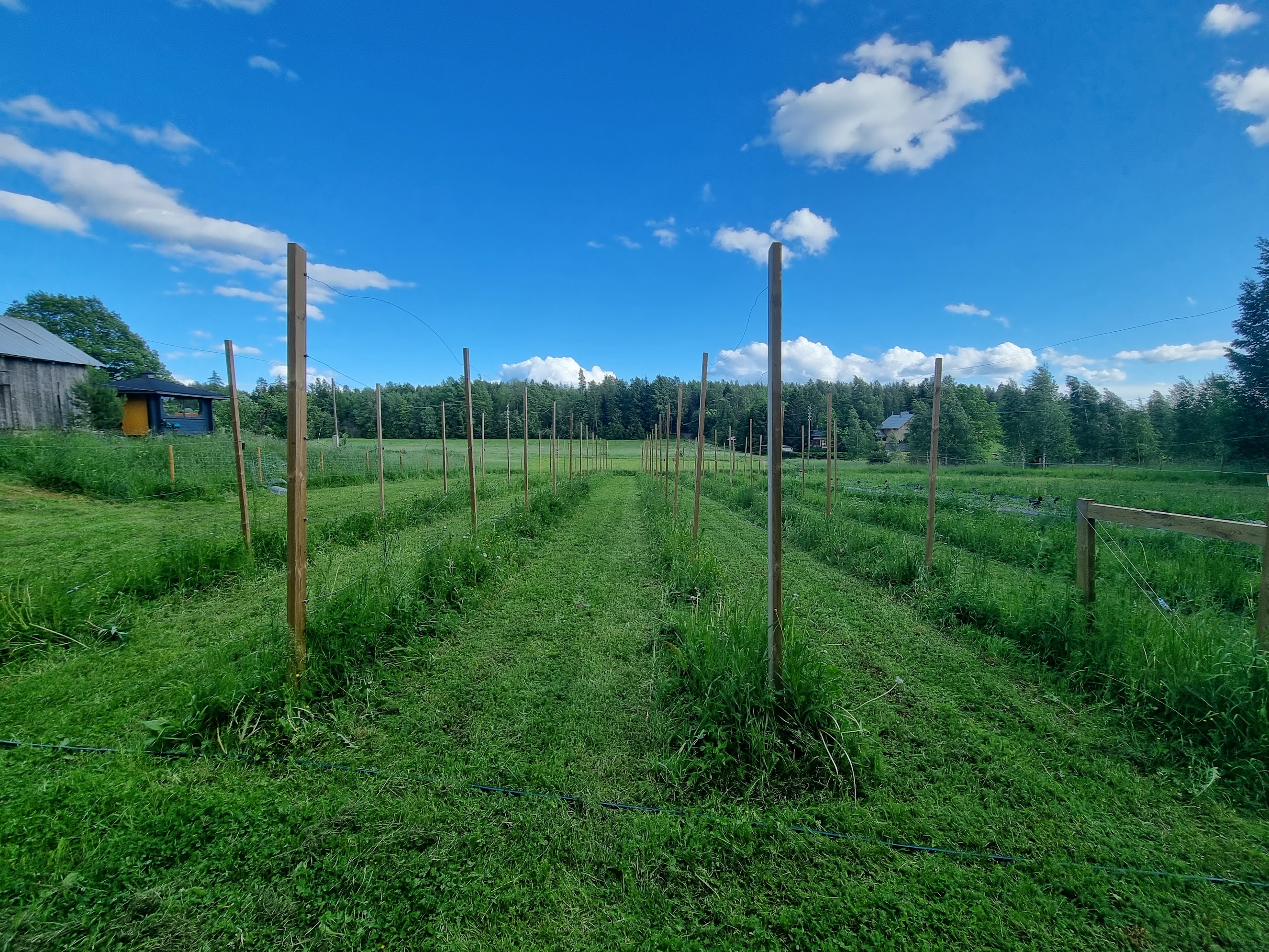 Рассматривали - капельную ленту с любым шагом между эмиттерами (10-30 см). Так точечно поливаете по ряду прививок, а спринклерами будете проливать междурядья - перерасход воды.
