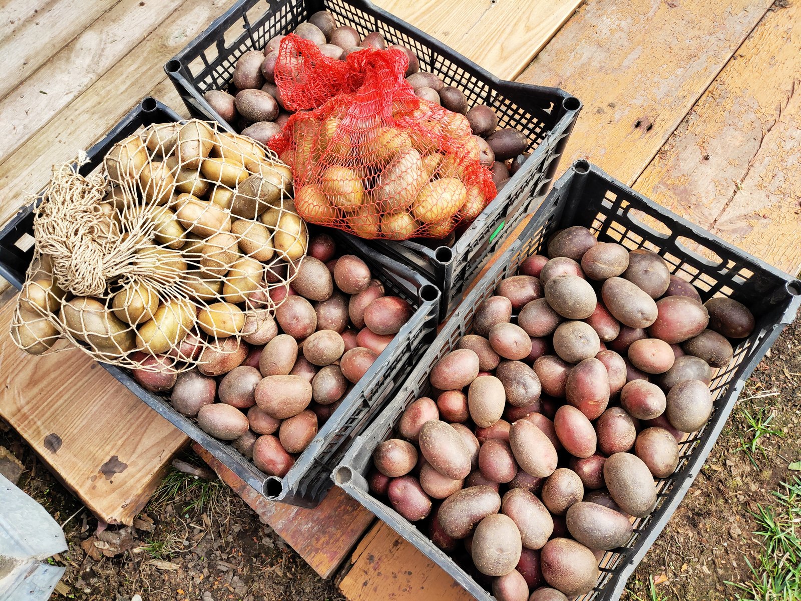 Вместо сокращения сортов в этом сезоне еще 3 новых Алуэт, Фламинго и Мемфис. Заманчивые описания, да и отзывы неплохие. Сокращаю частично Скарб, плохо он с засухами справляется, отказался от Веги, очень много мелочи, но в итоге 18 сортов. Надо при выкапывании отсортировать по сортам хотя бы по ведру в сетки, оценить вкус и хранение, м.б. так смогу уменьшить разнообразие