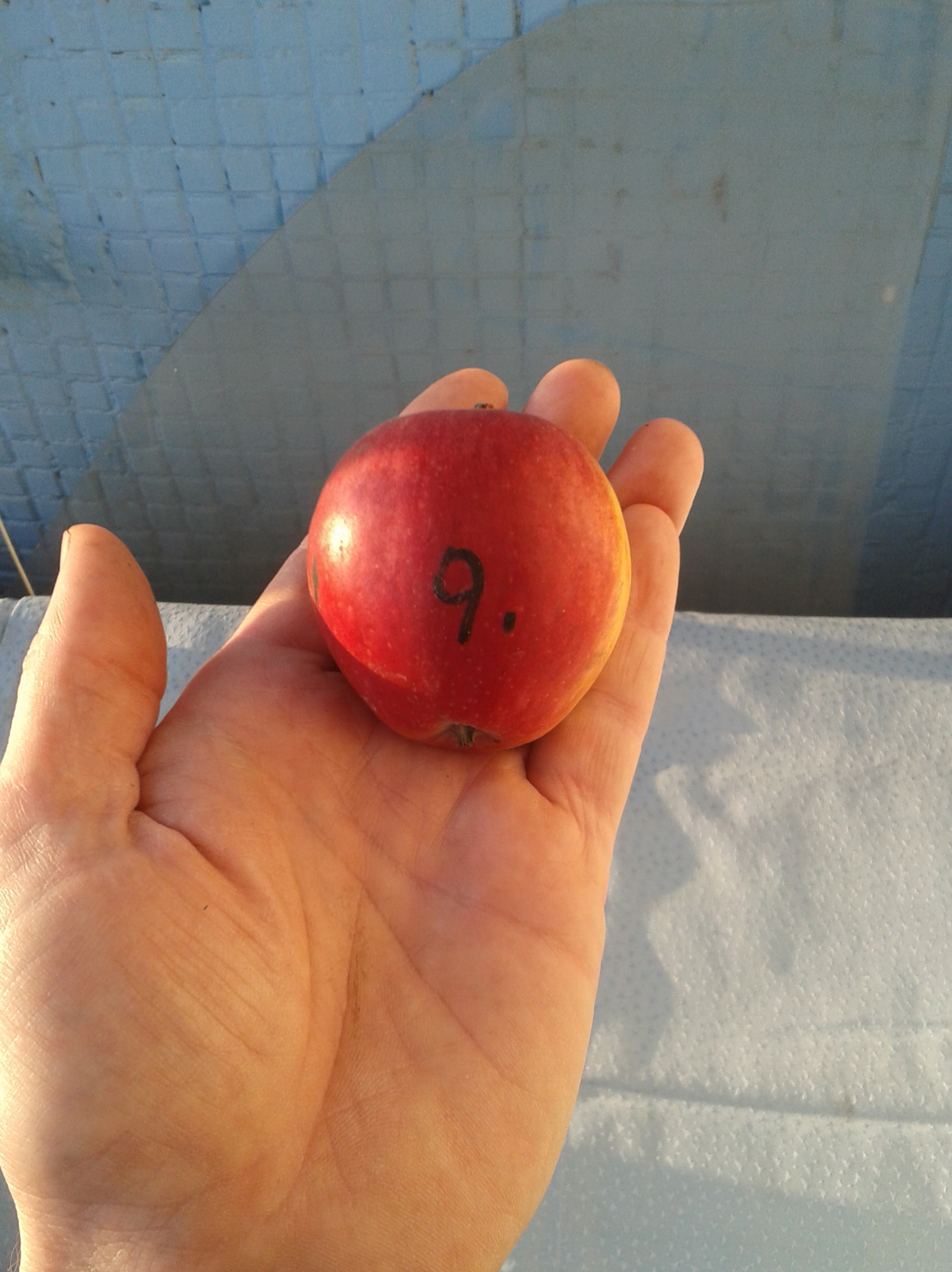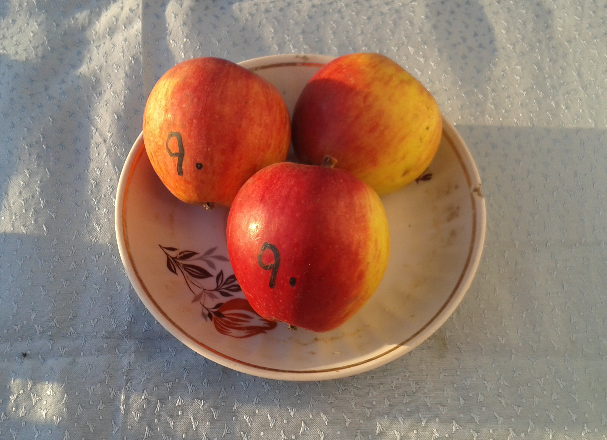 1. Алеся. Вкус сложный, насыщенный. Первая нота - кисловто-сладковатая. Потом на первый план выходит гармоничный фруктовый букет. Яблоко очень вкусное. Выросли не крупными (порядка 85-90 грамм). Лежат хорошо.