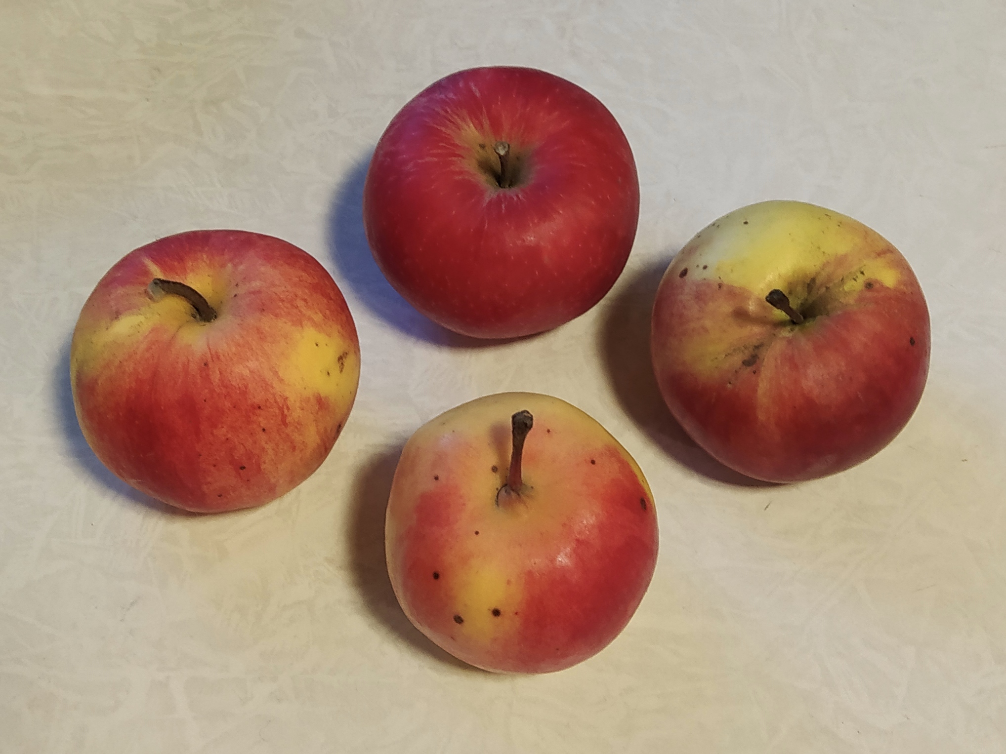 Уже отмечал, что снимал эти яблоки в два приема. Первый – в конце сентября (чтобы немного разгрузить дерево), второй сбор - двумя неделями позже. В основном это были мелкие плоды с нижних веток. В течение всего срока хранения, на удивление, вкус у яблок из первой партии постоянно оказывался лучше. И сохранность тоже лучше: на сей момент не испортился НИ ОДИН плод. У второй партии отход тоже был очень скромным – увяли и начали портиться всего несколько штук. Как это можно было бы объяснить? Мелкие плоды физиологически ближе к недозрелым, хуже накапливают запасы полезных веществ, что и сказывается на их лёжке и вкусе. Отсюда следует банальный вывод о необходимости более тщательной нормировки урожая, если для садовода важно его качество и здоровье деревьев.