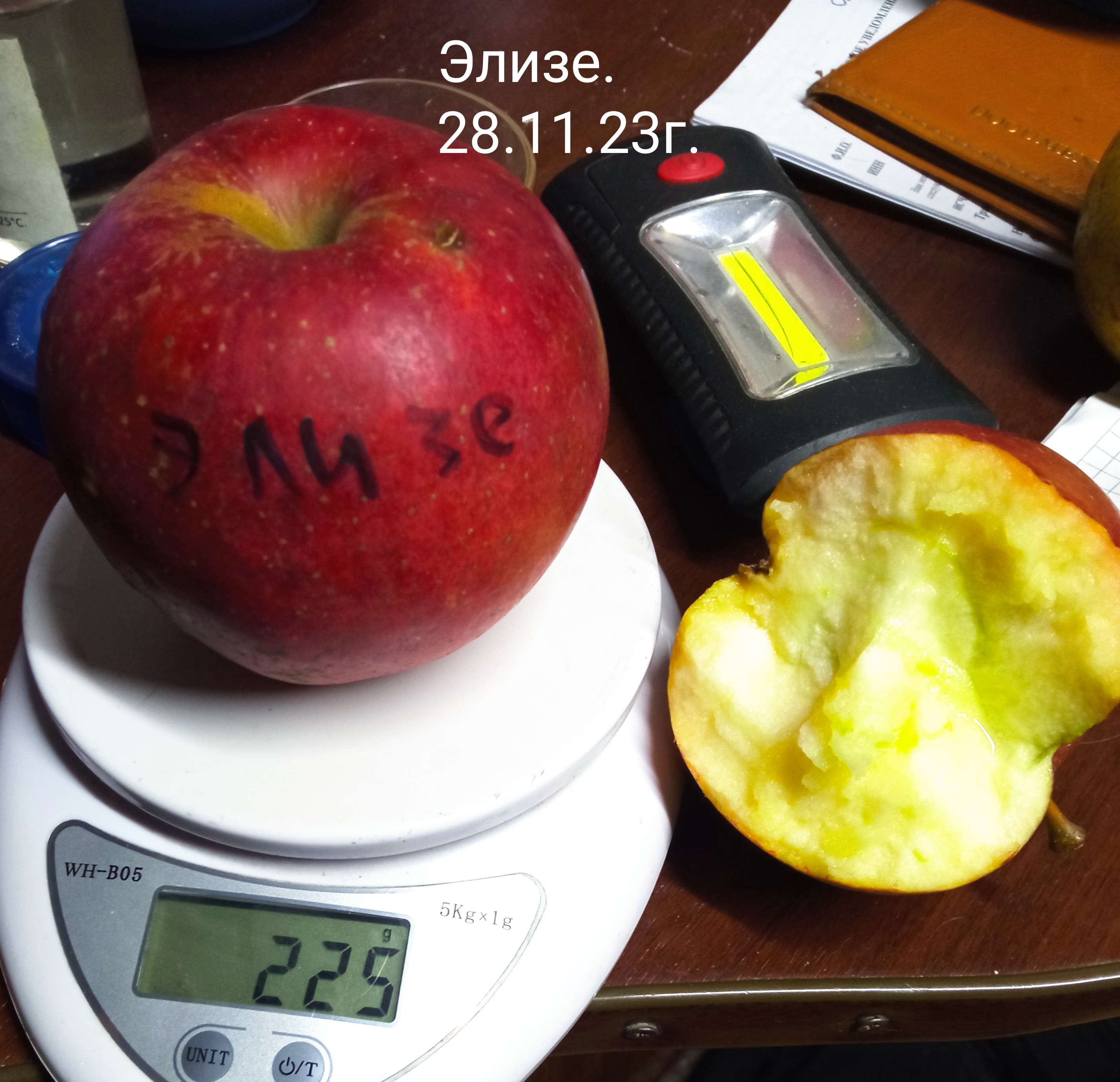 Съели вчера предпоследнее яблоко Благовеста, вес 150г. Мякоть уже потеряла твердость, хотя не стала рыхлой - ещё может полежать. Вкусное сладкое с еле уловимой кислинкой яблоко, очень понравилось всем, особенно детям. Яблоки хранились в сарае, с приходом морозов- в погребе. Последнее яблоко положила в холодильник- съедим на Новый год. В разных источниках указан разный срок потребления (до марта и января). По этому году январь мне кажется более правдоподобным при хранении в моих условиях.