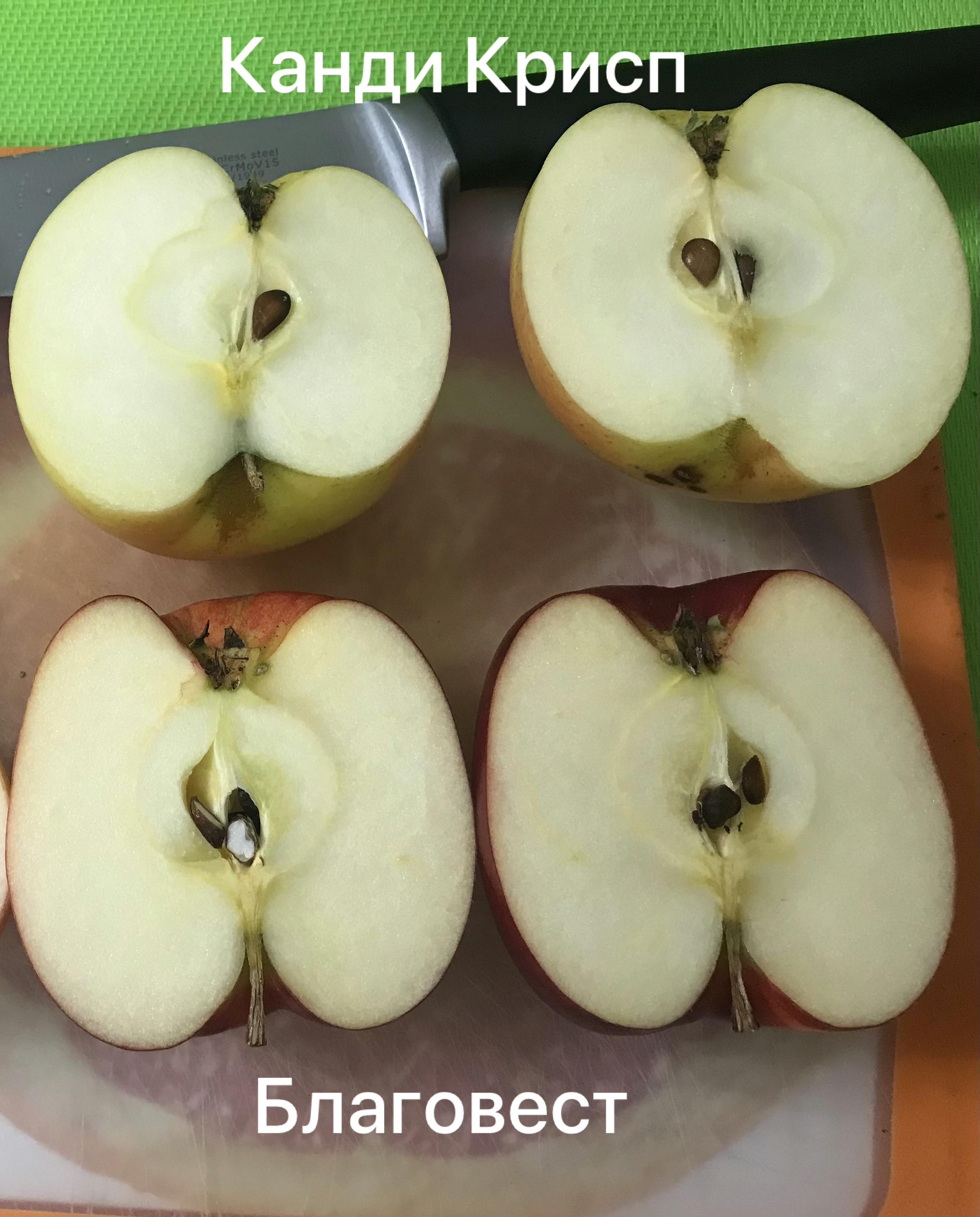 Канди Крисп, трехлетка на 54-118 (саженец от Есичева, посажён двухлеткой весной 22г) первое плодоношение, снимала 15.10, вес 173г также сладкое с небольшой кислинкой, чуть большей чем у Благовеста на сегодня. Мякоть более хрустящая в отличии от него, но менее твёрдое и хрустящее, чем у Хани Крисп. Всем также очень понравилось - достойное яблоко. Лично мне Хани Крисп этого года нравится чуть больше именно из-за гармоничного вкуса и ещё большей хрусткости. У Ольховича срок потребления указан до января. По ощущениям на сегодня храниться будет дольше Благовеста. Осталось ещё 4 яблока, посмотрим.