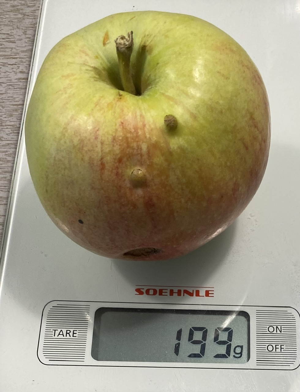 Летнее Сладкое не готово, Сахар 12,0° Brix, примерно ещё 10-12 дней до съёма. Снял яблоко, повреждённое осами.