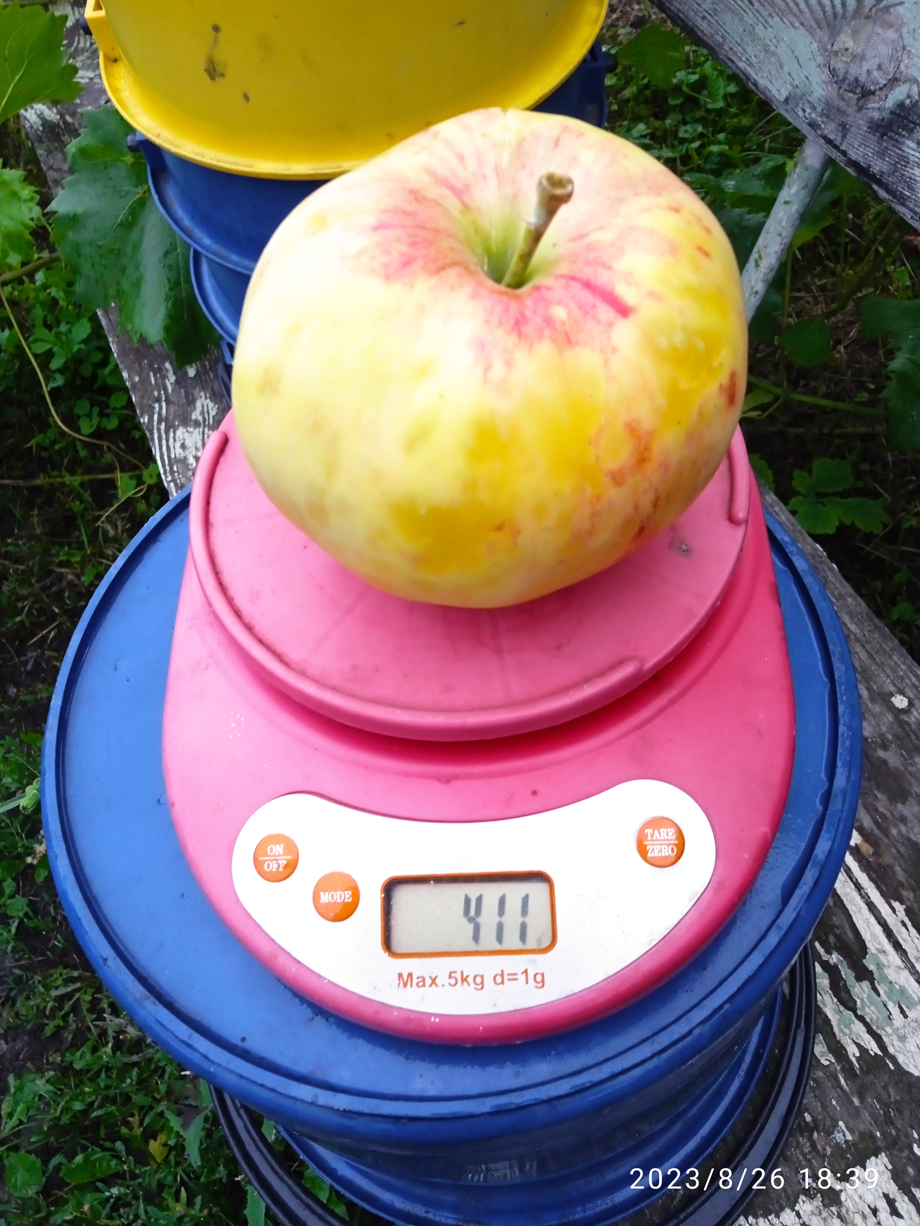 Протестировал несколько осыпавшихся плодов. МЕЛЬБА- очень хороший вкус. В этом году плоды крупнее обычного, 250-300 г. Возможно, повлиял обильный полив пару раз в июльскую жару. Сахара меньше обычного, 15,8’Brix. В эти выходные снимем урожай. Все, заходящие на дегустацию, отмечают отличный вкус яблок, д.о. 4,5.