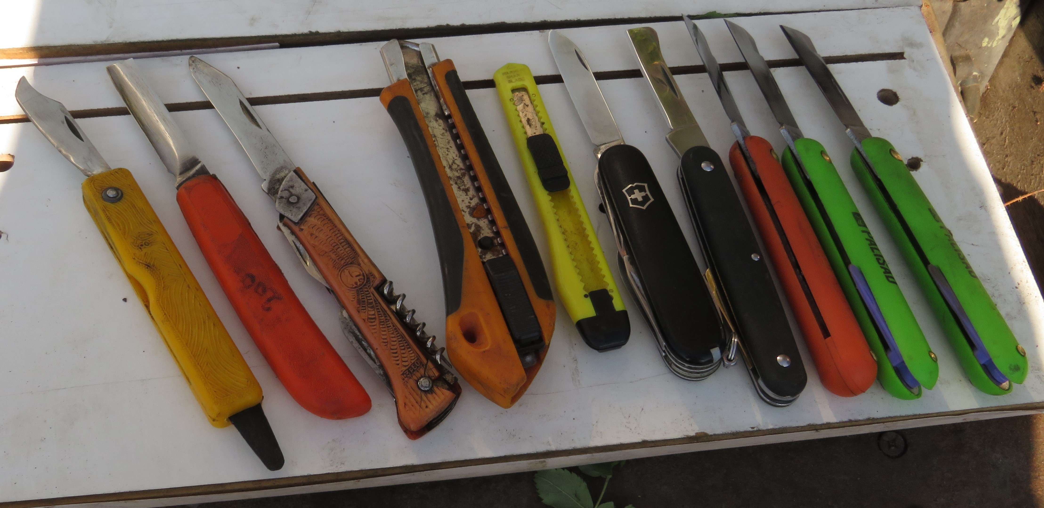 Немного переточил с использованием водного камня и шкурки от 600 ,800, 1200 и 3000грд. Стало отлично. И за 360 рублей в нашем лабазе случайно приобрел абсолютные копии ножа финланд под маркой палисад. После правки стали резать весьма хорошо. Даже смог привести в порядок ту гадость за 200р из непонятного черного железа .Но только копулировочный нож. Окулировочный можно было бы выбросить, но держу ради язычка. Мультикулы викторинокс и советский за 3р60коп хороши, первый для окулировки вприклад ,да и косой срез можно сделать. Советский с прямым лезвием отлично делает косой срез,ровно и чисто. Ну и канцелярские строительные ножи. Маленьким вприклад розы хорошо прививать. Замечу , что я не профи , просто люитель на старости почикать растения