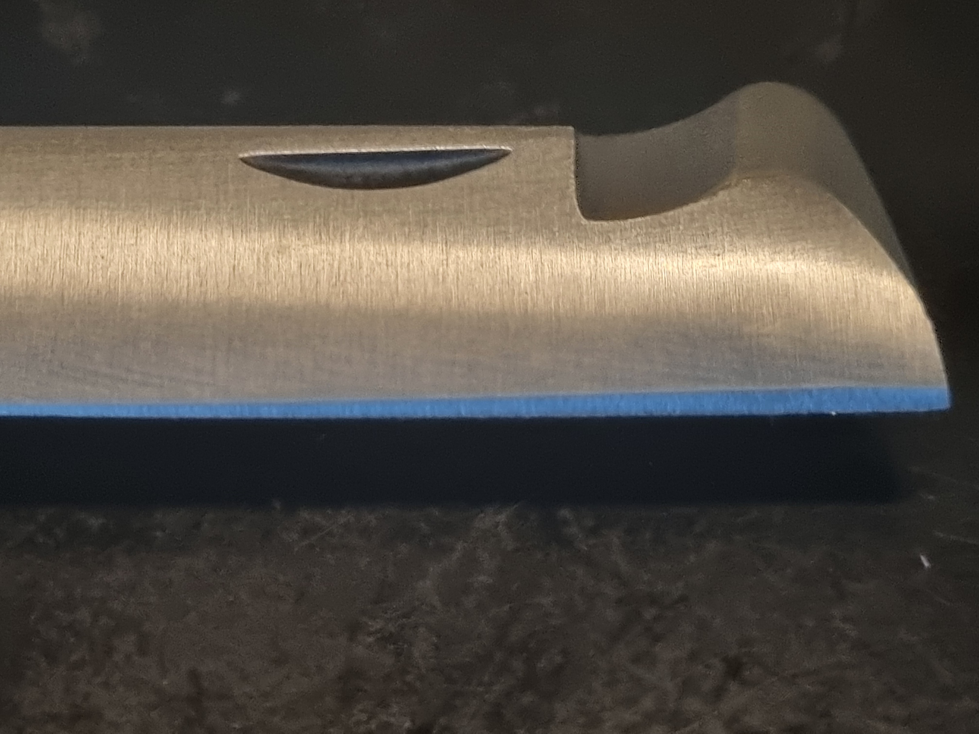 То есть сейчас на фото видно верх ножа при резе. Если это так , то нож для левши ( при резе на себя) или для правши , но тогда резать от себя. На фото виден спуск ( прививочные ножи имеют один спуск( с одной стороны) и эта сторона всегда с верху. Иначе придется ловить рез ростоянно его подгоняя. Теперь возьмите нож в правую руку и сделайте иммитацию реза , спуск где в этот момент??? Вот и весь фокус.И заточка точно не заводская ( не станочная) . просто на гриндере тиранули. Обратную сторону лезвия покажите. Чтобы увидеть есть ли там спуск.