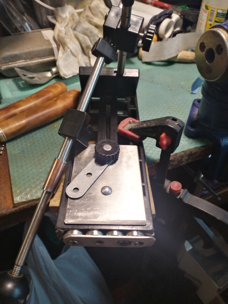 Точил 2 ножа с нуля, заныла спина от монотонных движений, заглянул в тему, разговор про заточку. Мало ли у кого такие, как у меня есть. По скольку я с зажимом этим намучался, решил поделиться опытом, с доработкой магнитами.