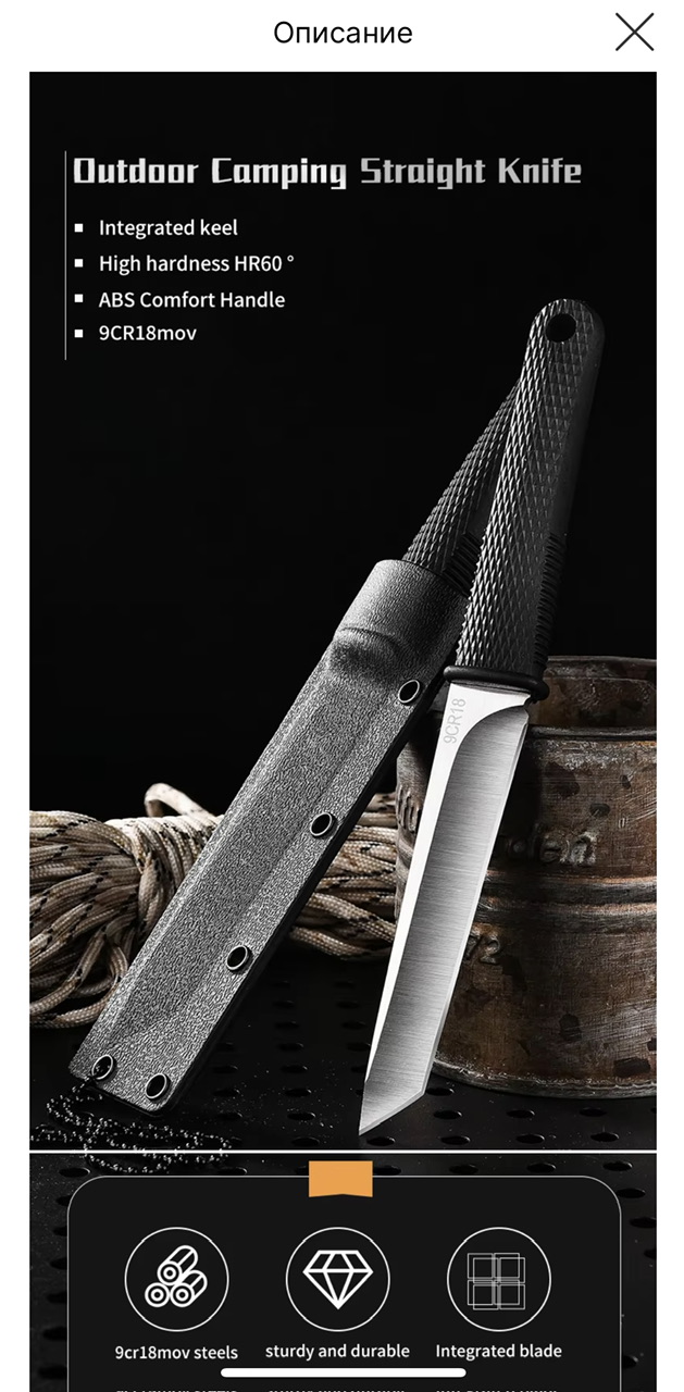Нож из стали 9Cr18, твёрдость 58 HRC. Чистая нержавейка.