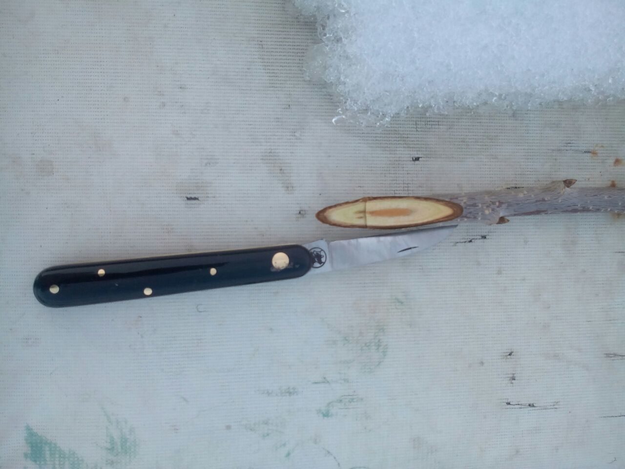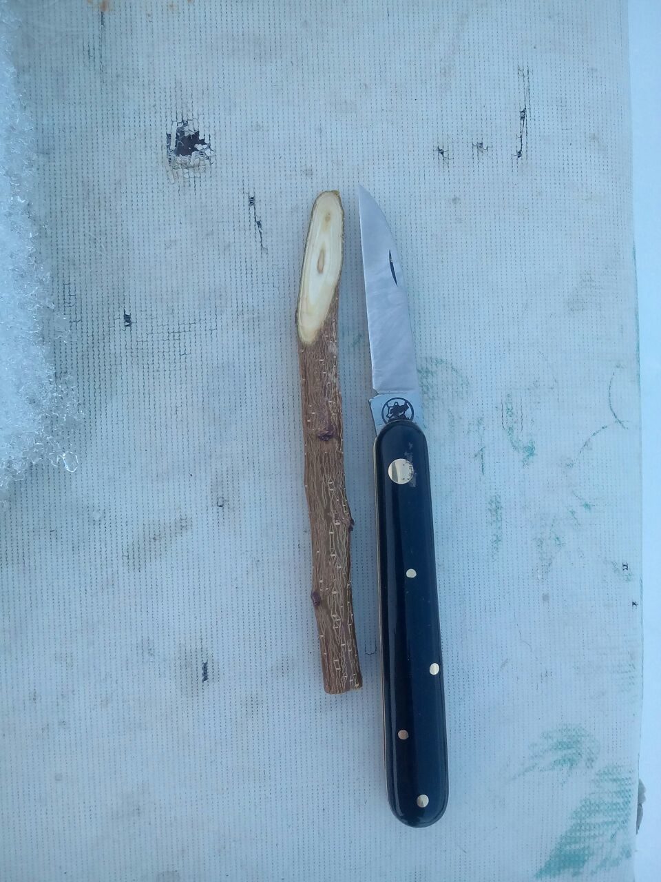 Сегодня получил по почте ножичек(брал вот здесь https://dfogorod.ru/sadovyy-instrument- ... oi-art-224) и решил враз его опробовать,специально не точил,просто поправил на ремешке и в путь.Нож как раз под мою руку,режет просто прелесть что тонкие черенки чуть толще спички,что грушу(правда толстые черенки не пробовал) что абрикос.Конечно нужно ещё проверять на сколько резов будет хватать без правки на ремне,но это уже потом в процессе работы,пока я им очень доволен,давно искал такой ножичек под тонюсенькие черенки!