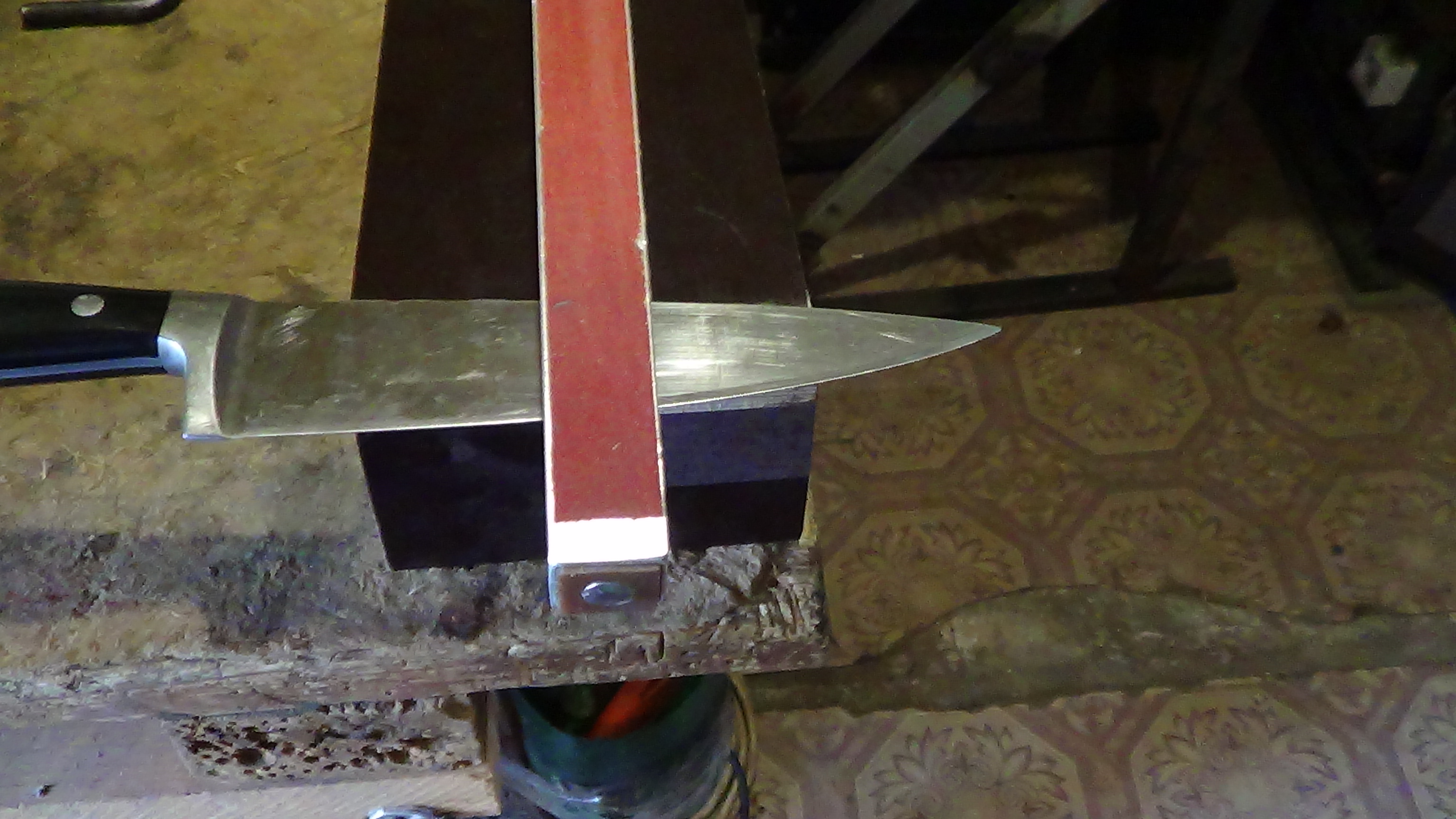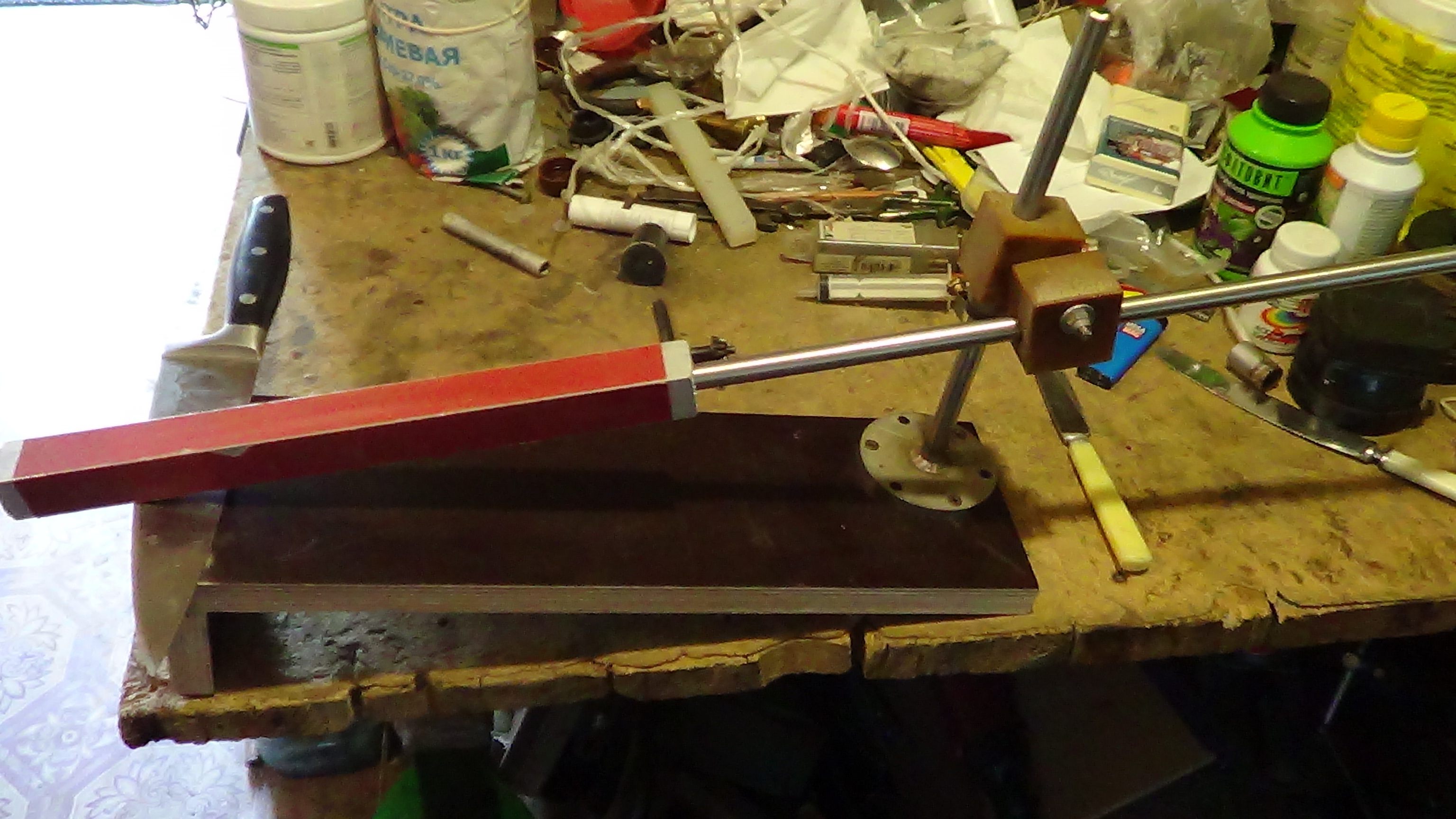 Всё гораздо проще. Я вывожу любой угол на заточной приспособе. Лезвие держится на 4-х неодимовых магнитах.