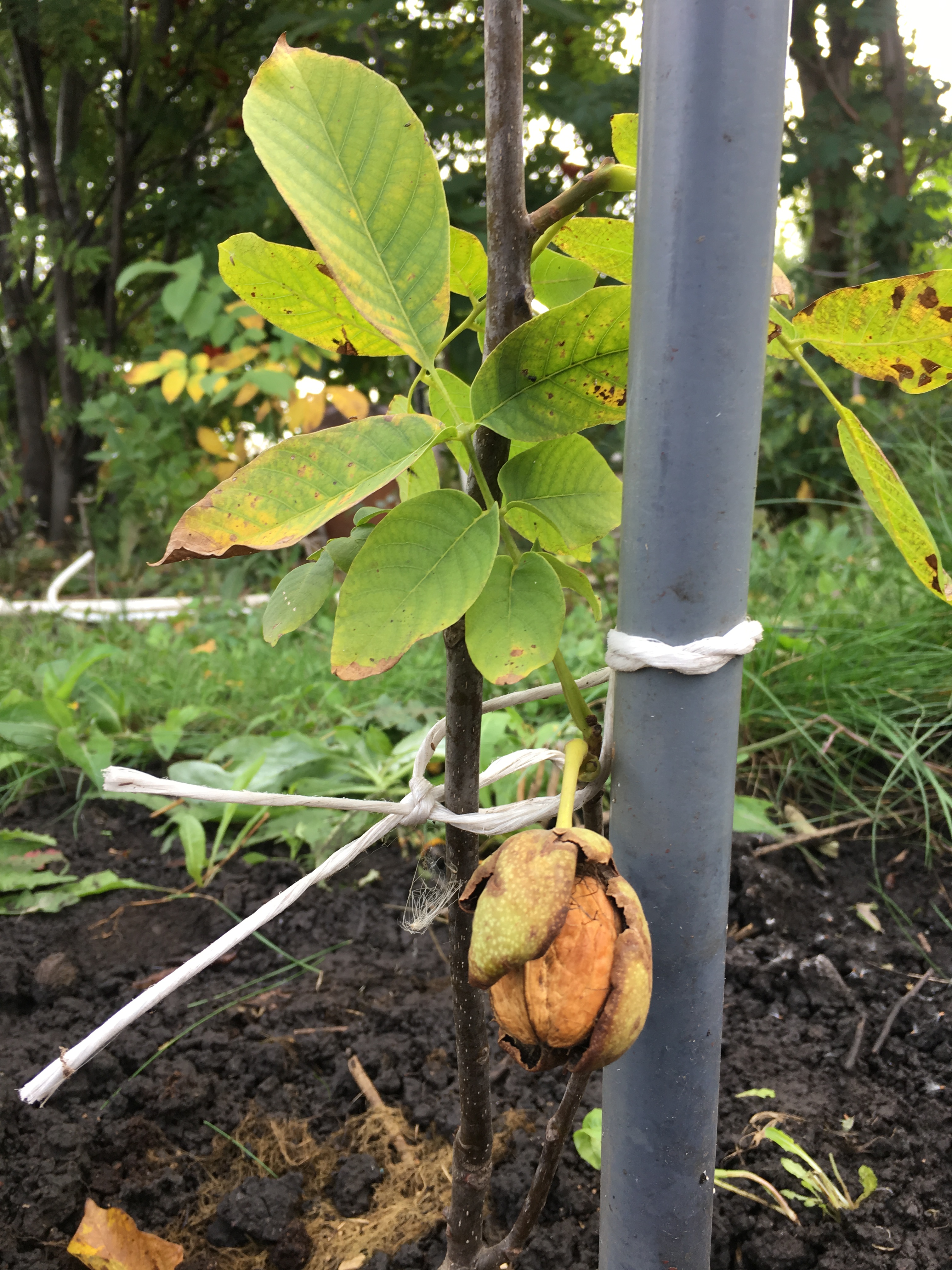 ...случайно обнаружил чёрный орех в Калужской обл.( рядом по границе с Подмосковьем ) , впервые встречаю чёрный у нас , ореху висеть по хорошему до конца октября , ядро несколько водянистое ещё ( на моём тоже ) ..заморозков ранних не будет может и дозреют .Созревание конечно на месяц дольше чем у грецкого , может элементарно САТ не хватить , май холодный был..а так дерево огроменное . ..орех который без околоплодника - прошлогодний .