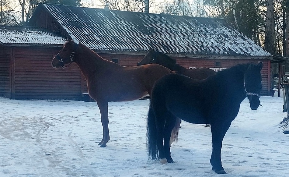 А так как почва под орехами песчаная, не плодородная, то на выходных внес немного конского навоза. Хоть и снега еще 5-10 см.