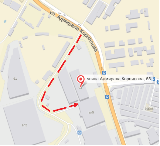 там где заканчивается третий штрих от адмирала Корнилова, будет пропускной пункт и въезд. Там на въезде есть указатель карго технологии