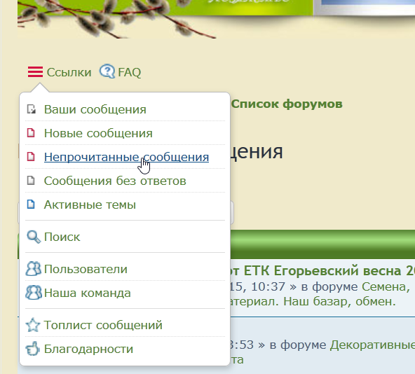 Друзья, подскажите , куда нажать надо, чтобы получился список последних активных тем или сообщений в темах?