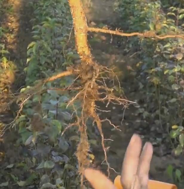 Причем видно что верхние корни растут активнее нижних. Тут или свойства подвоя и это не сеянец или действительно секрет агротехники.