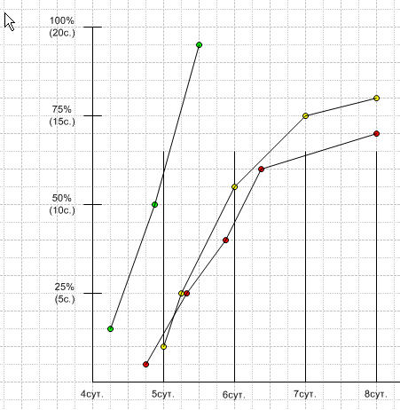 ПрорОстание проходило при трех средних температурах (реальная же температура колебалась около -/+2°из-за инертности термостата)