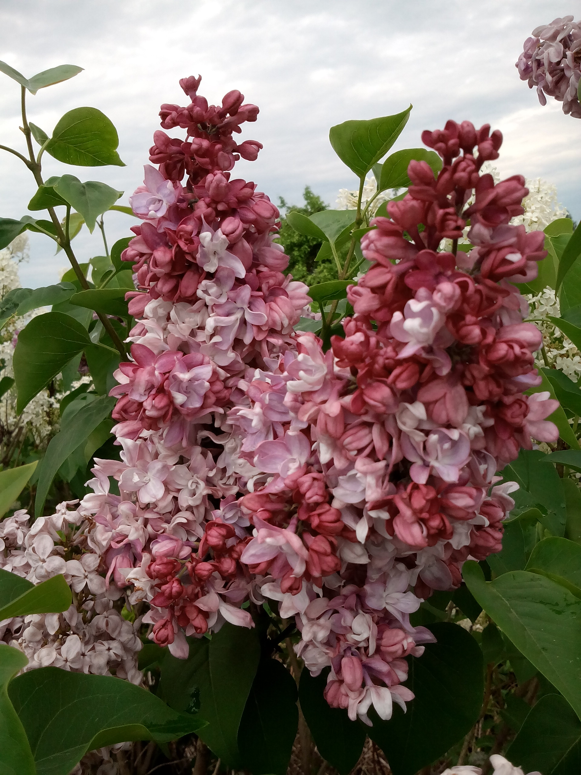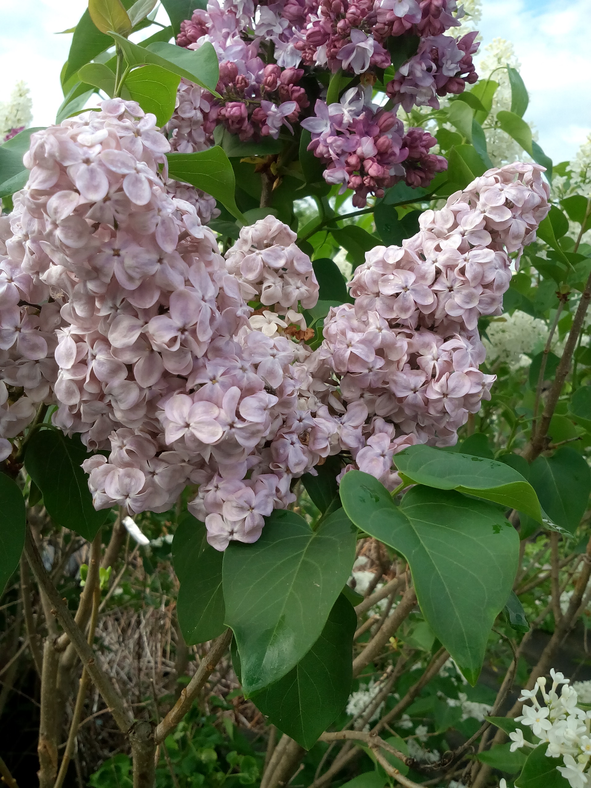 У нас сирень начала цвести. Сорта небо Москвы, Олимпиада Колесникова, Красавица Москвы, Примроуз