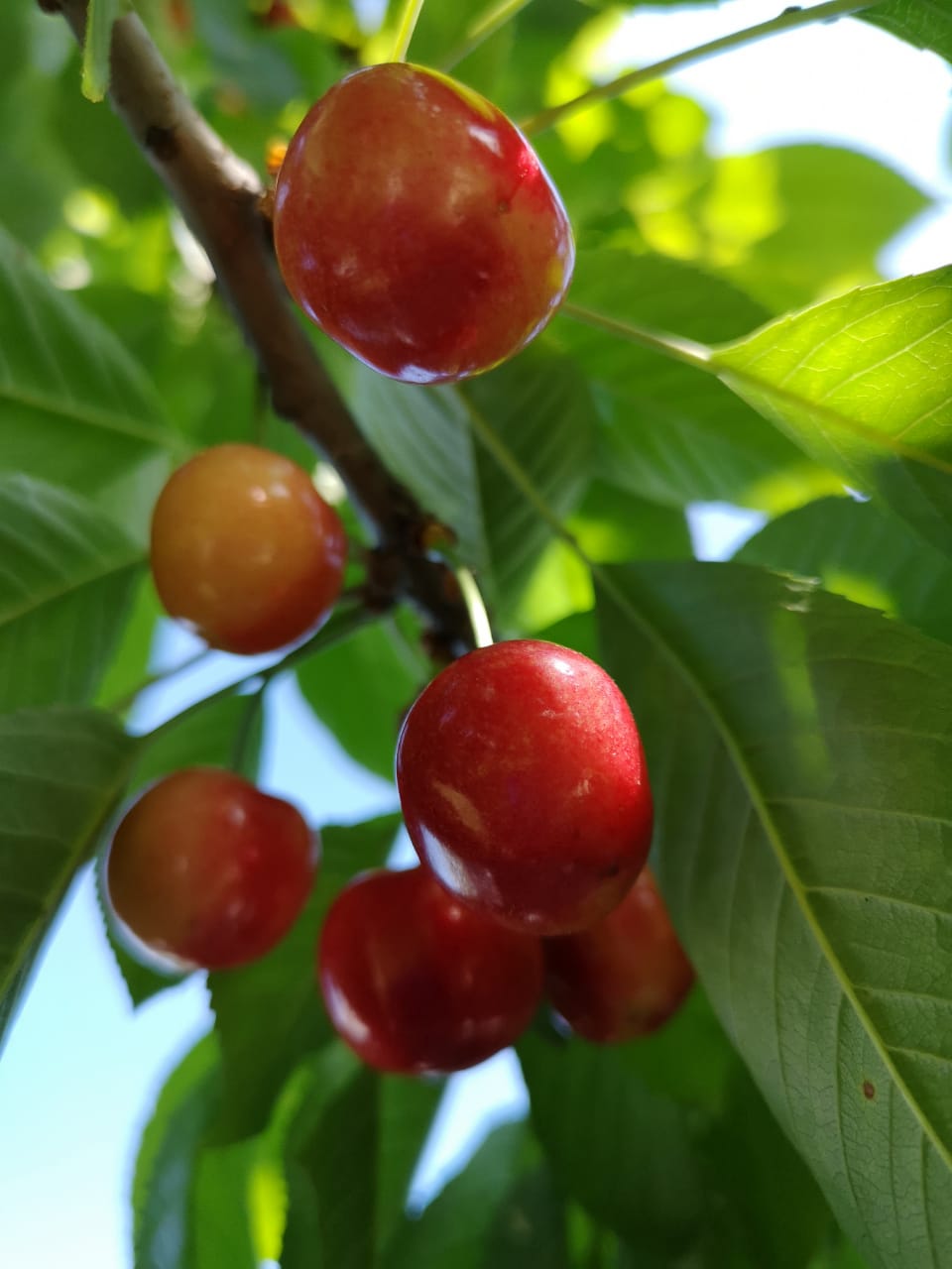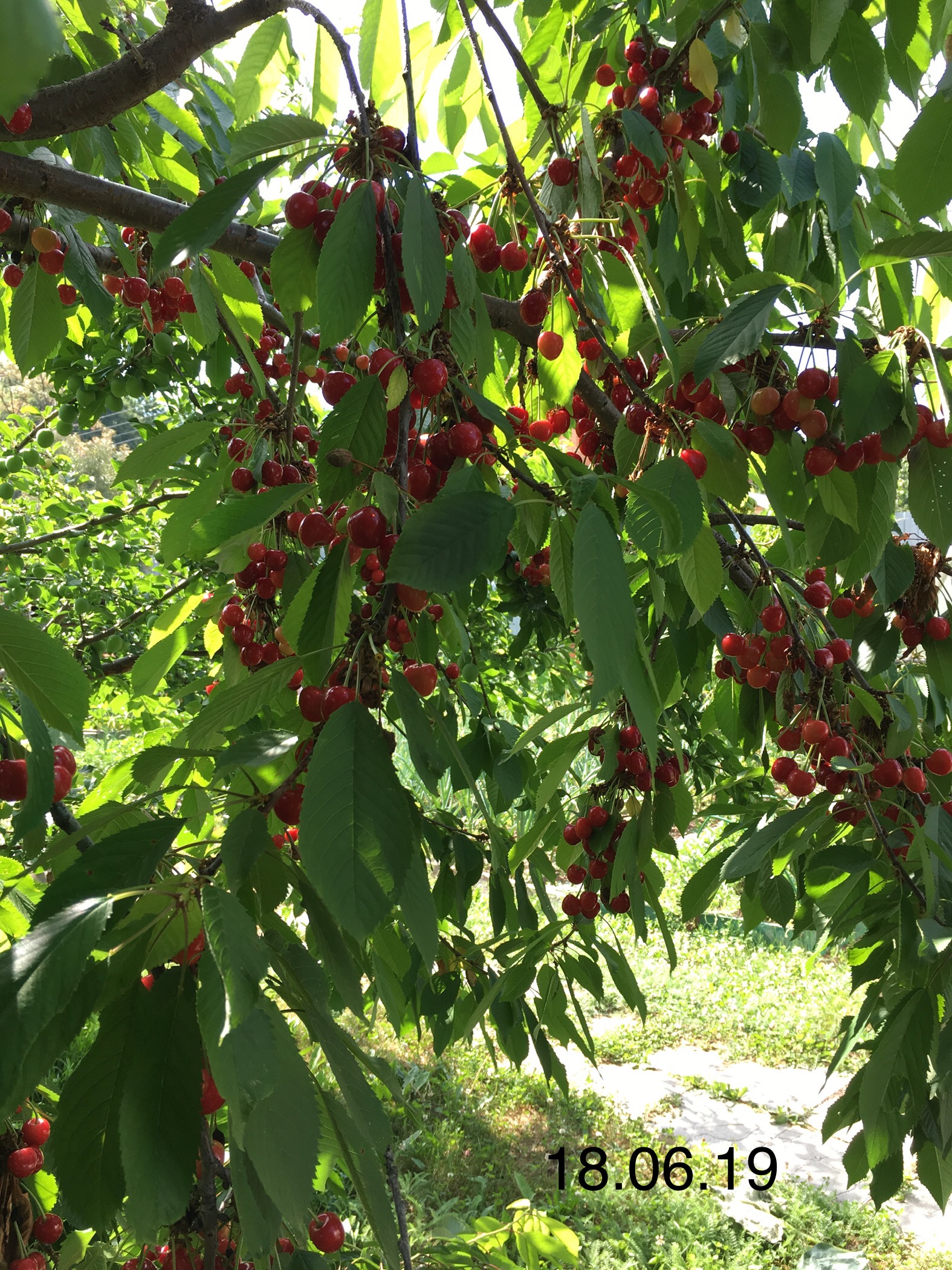 Одно дерево оказалось явным пересортом, но зато ранние ягоды, красные... воооот... из-за которых вечная война с дроздами. Успеваем собрать только внизу, верх объедается в стадии зелено-розовых ягод.