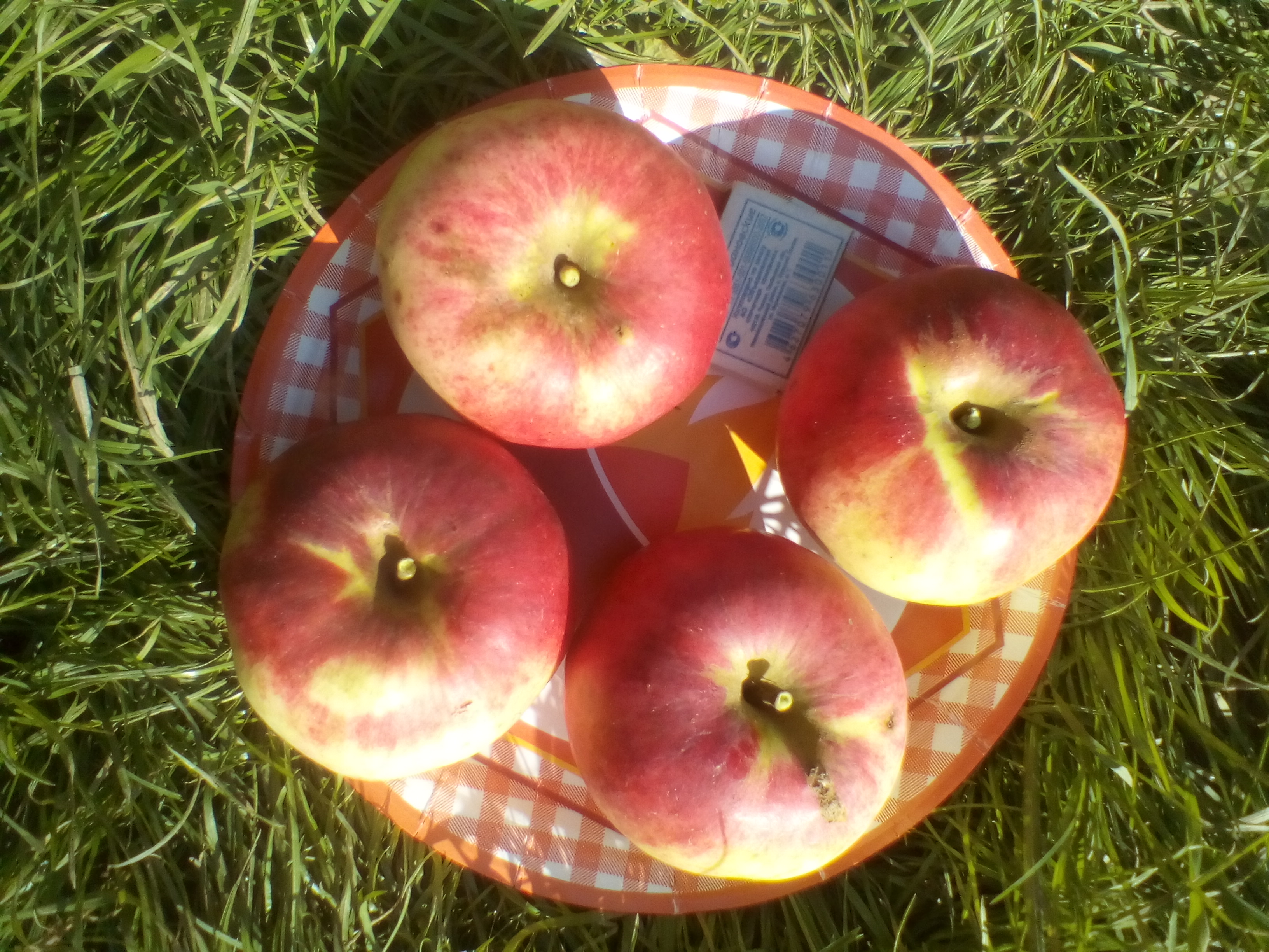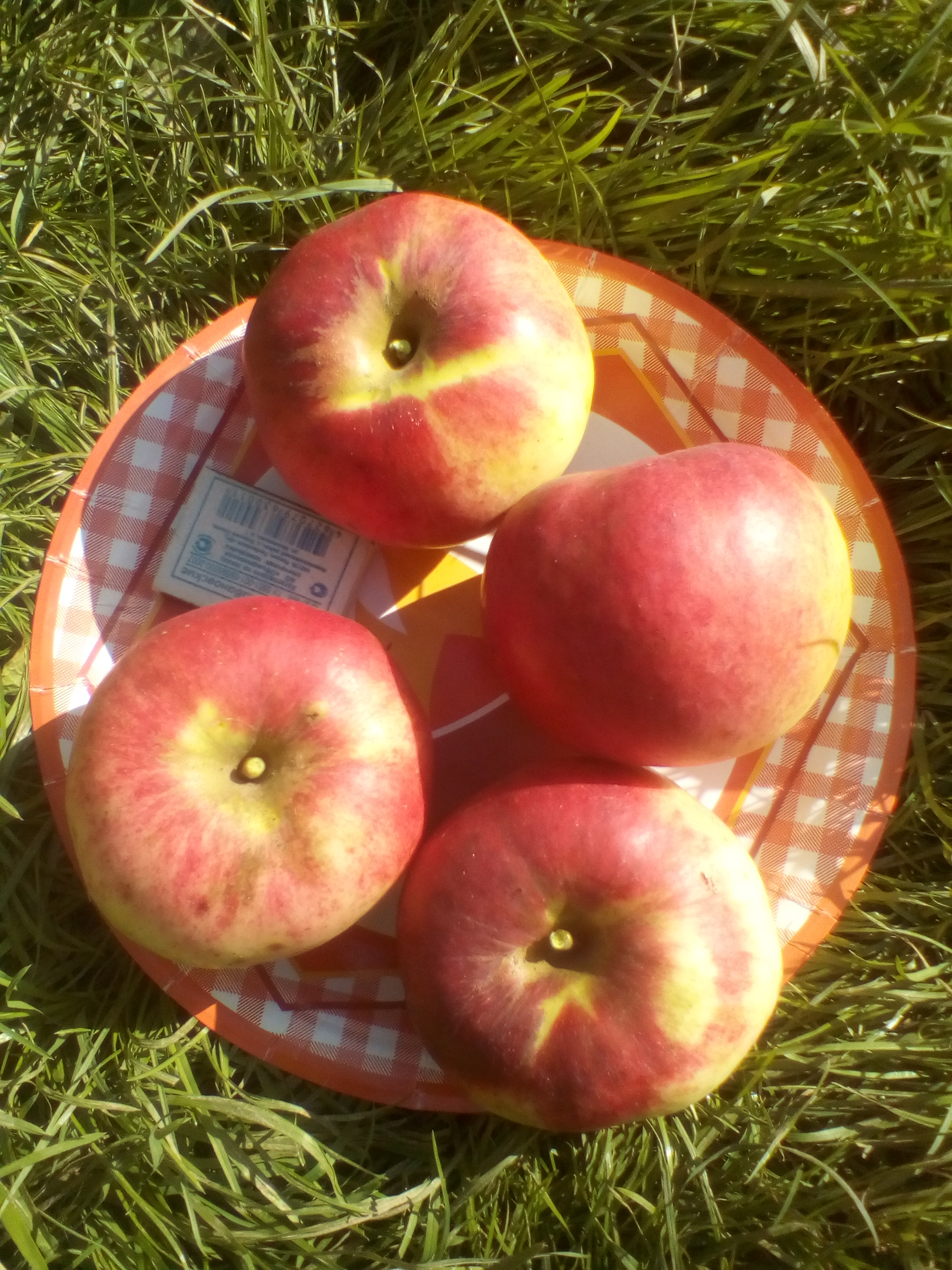 Что имеется в итоге. Сорт зимний, видимо. Яблоки очень жесткие сейчас, держатся очень крепко. Яблоня не сбросила ни одной завязи за весь сезон. Плодожорка ее не ела вообще, вот прям ни одного яблочка не погрызла, а другим сортам досталось. Ничем не обрабатывалась, не болела. Яблоки весь сезон висели зеленые и мелкие, как будто не росли совсем. И вот за сентябрь превратились в такие, как на фото. Не очень крупные, в основном. Вкус сейчас невыразительный, сладковатый с едва уловимой кислинкой и таким же привкусом, аромата нет. Косточки еще только начали коричневеть. Мякоть сочная и хрустящая, есть уже можно, но не хочется пока( жевать тяжело).