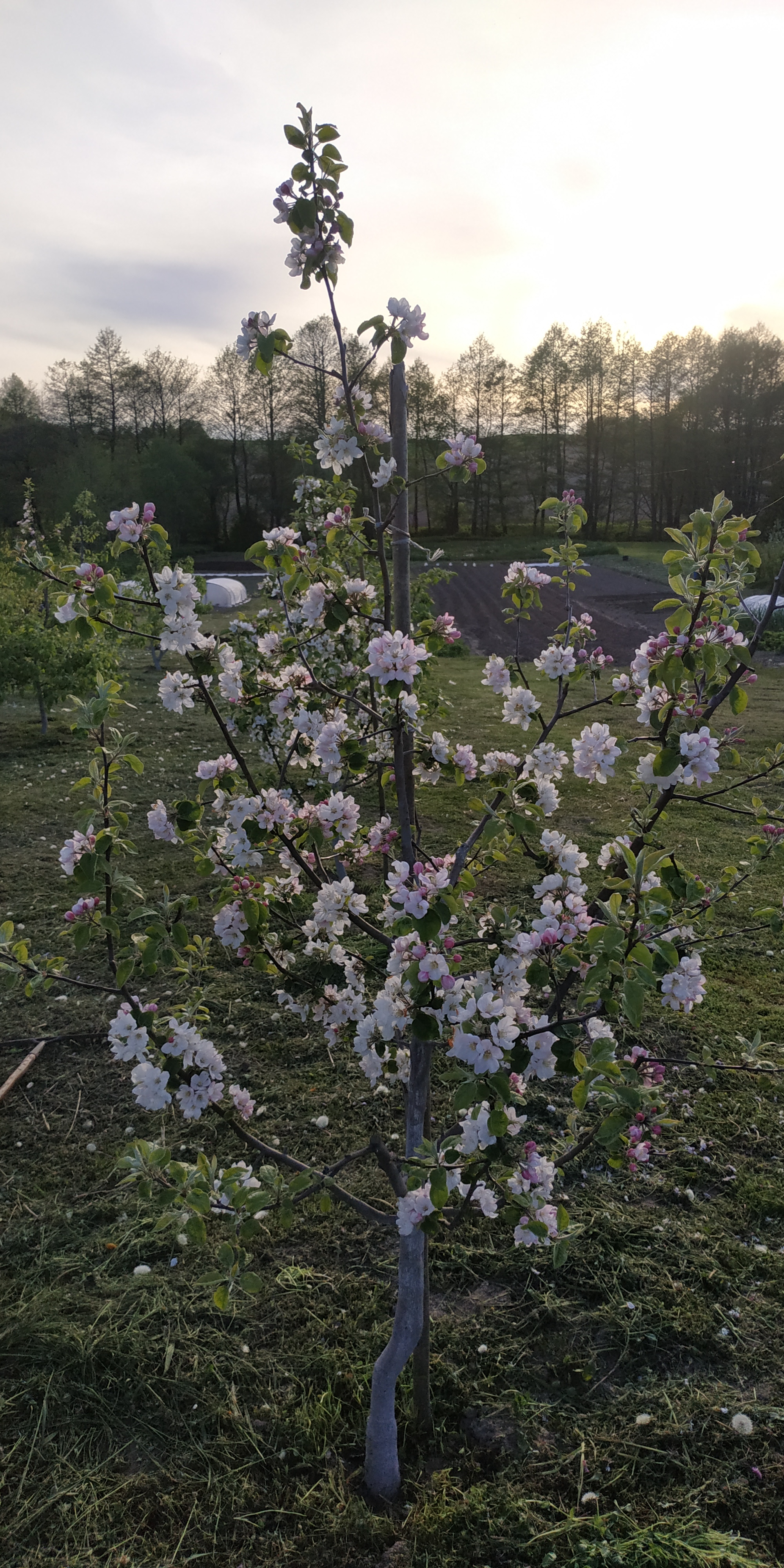 Алеся вообще не проснулась, но там что-то другое. Она чуть не вывернулась прошлой осенью из мягкой земли под весом урожая. И с тех пор явно заболела. Видимо кандидат на раскорчевку вместе с Сябрыней и Весялиной. Все эти сорта оказались самыми поздно оканчивающими вегетацию в саду. В ноябре единственные, кроме ММ106, стояли с зелёными листьями. Видимо выращивать их отдельными деревьями не судьба, максимум в кроне.