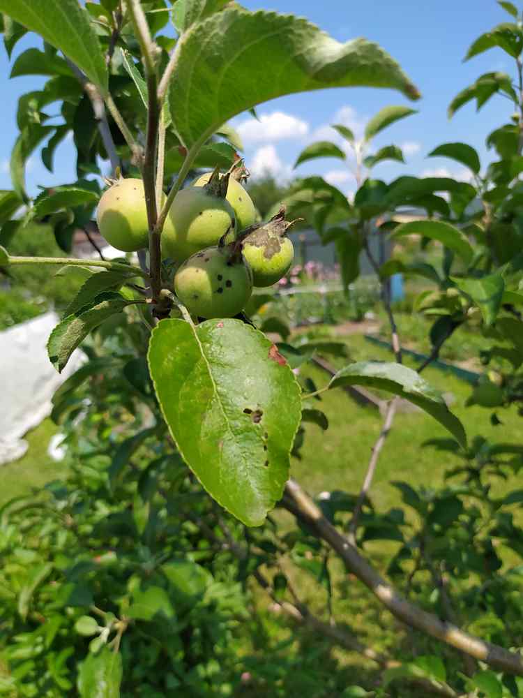 Елена. Несмотря на многочисленные профилактические обработки сада (первую делал еще в марте) таки подцепила паршу. Причем сильнее всех других неиммунных сортов. Вероятно это последствия уникально холодного мая. Самые маленькие плоды парша разрывает до семенной камеры: