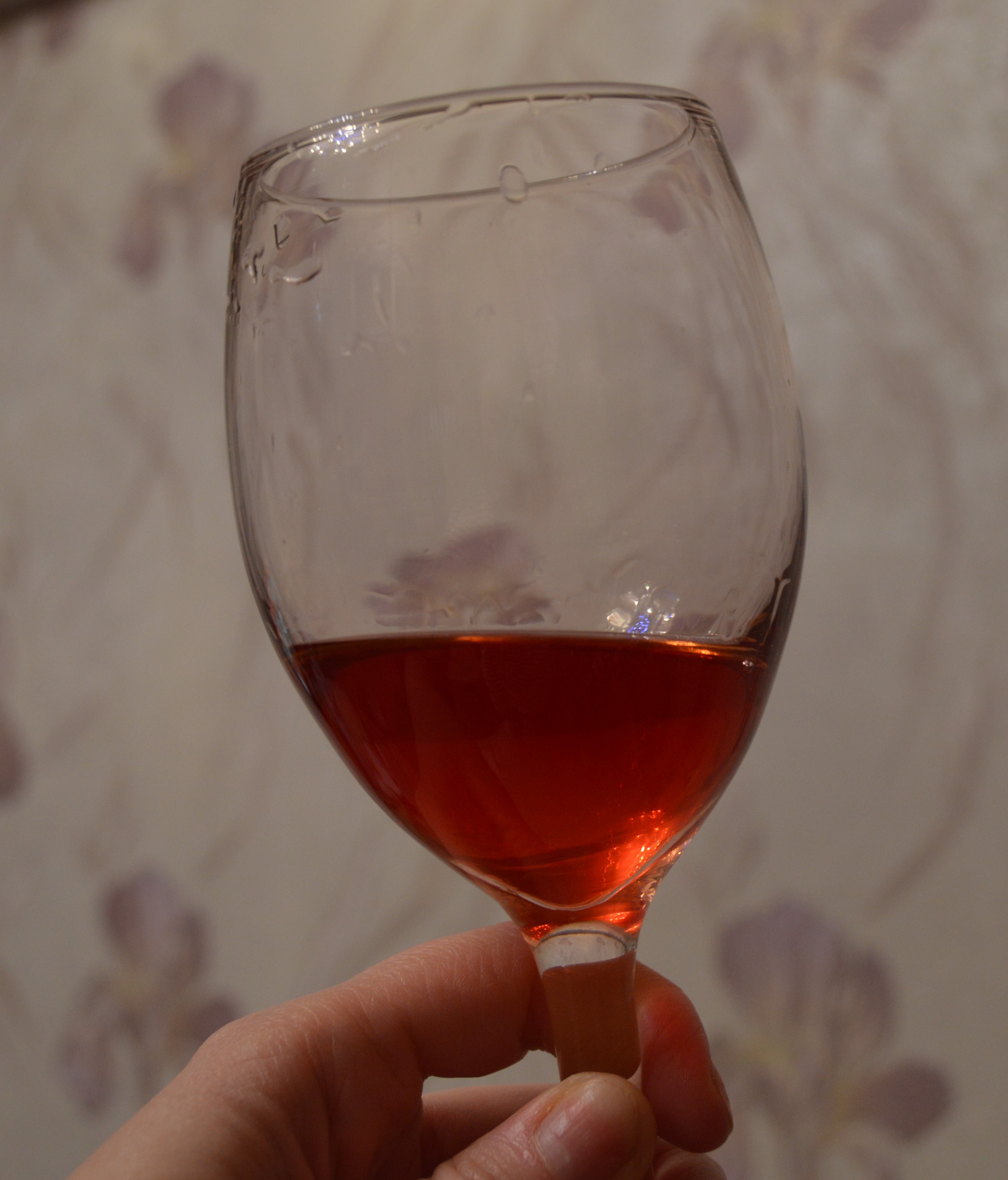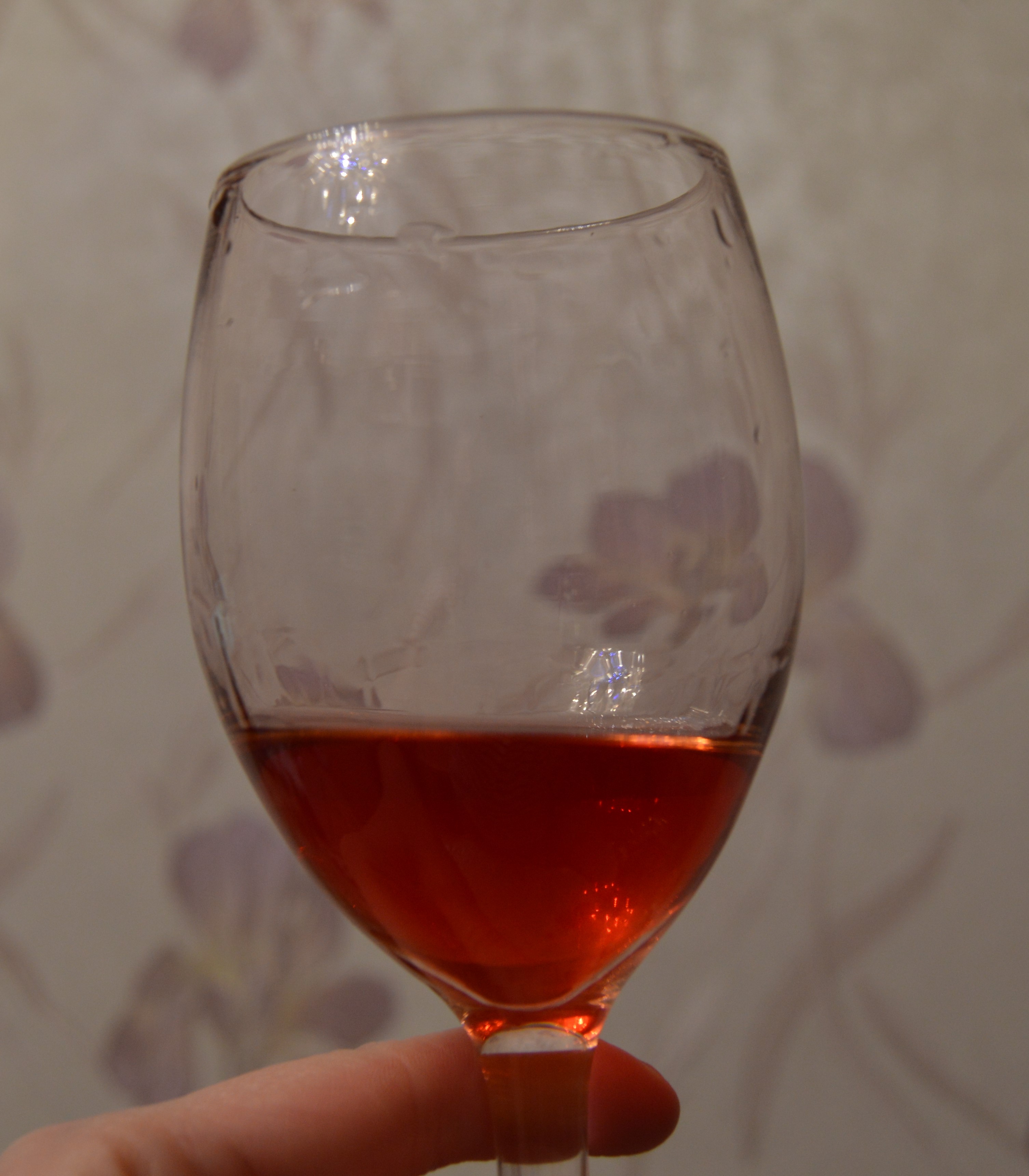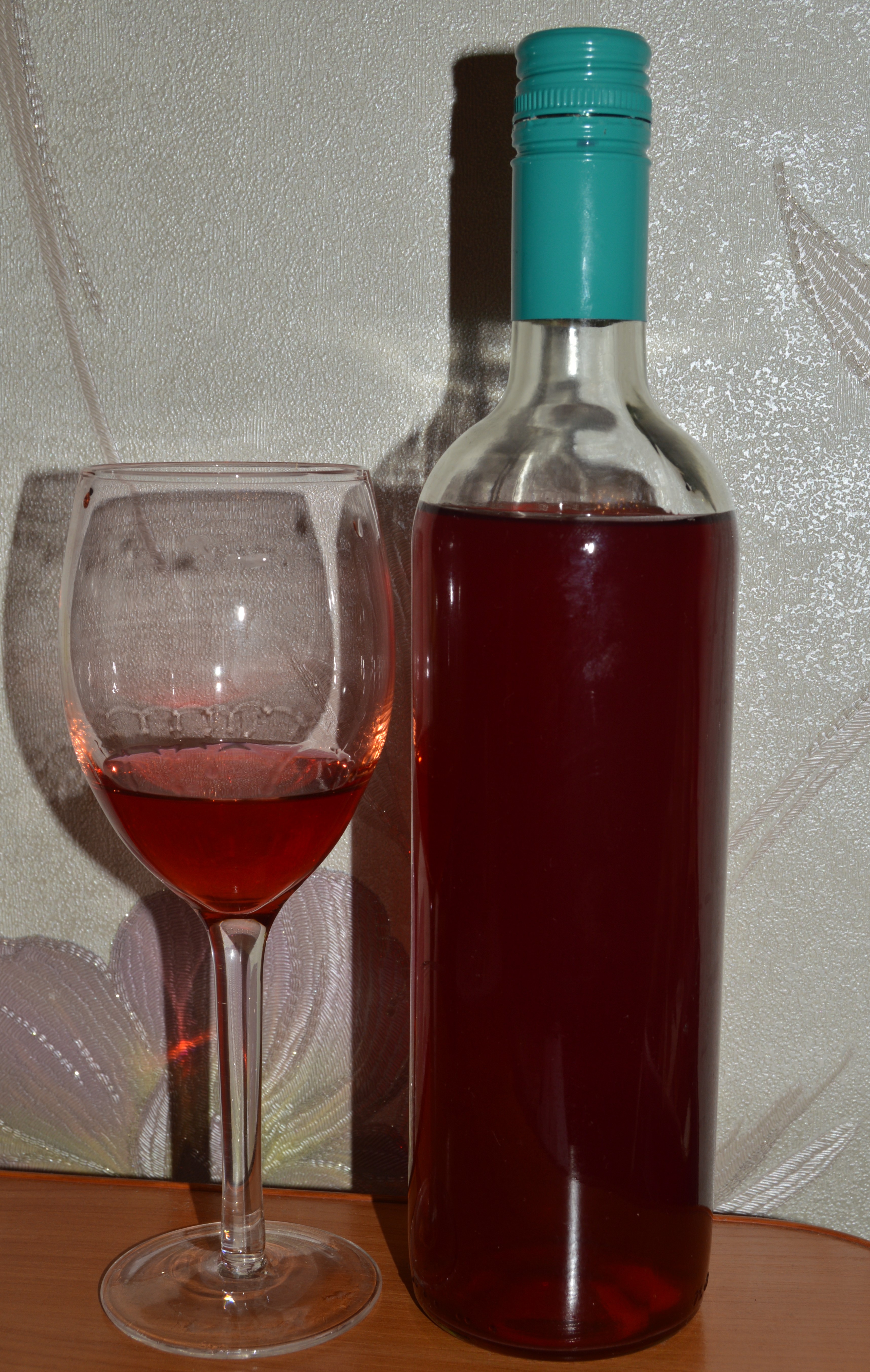 Получилось довольно приятное розовое (кларет) вино без претензий на шедевр , сахар и спирт померить нечем , на мой вкус что-то полусухое , довольно хмельное. Тесть будучи категорическим противником сухих вин , это вино одобрил , тёще и жене то-же понравилось. Пить лучше чуть охлажденным. Осталось ещё пара литров , но как мне кажется вкус понемногу ухудшается , лучше употреблять до НГ.