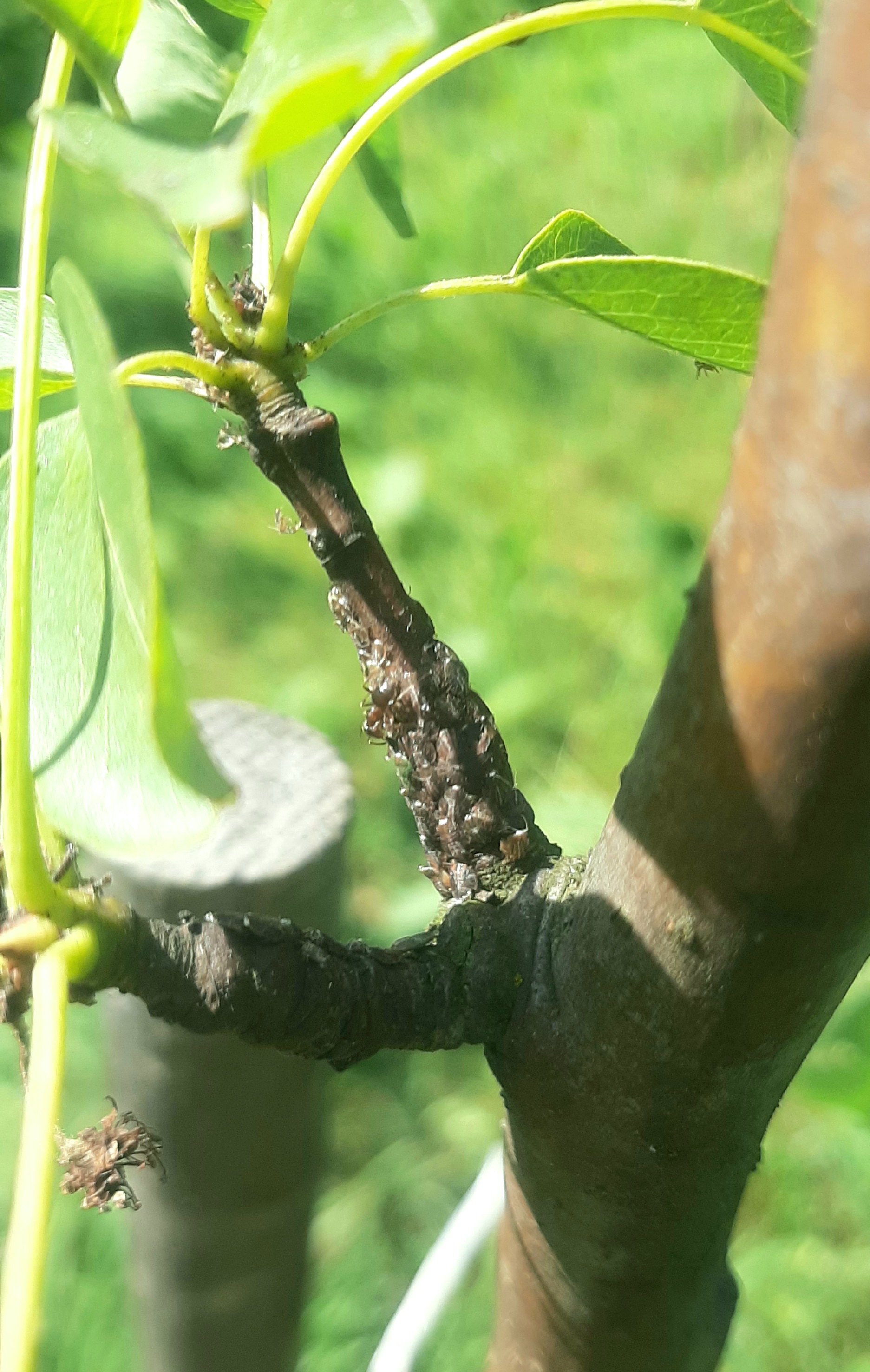 Здравствуйте, уважаемые грушники:) Я начинающий дачник, посадил 2 года назад двухлетку под Питером, прижилась хорошо. Но тут приехал и...гадость какая то на листьях и на стволе. Посмотрите пожалуйста фото, может знаете, что это за жучки паучки и чем их травить? Пока опрыскал содовым раствором по рекомендации тёщи, тёща, это ж святое, проще опрыскать:))) В общем хелп и сос, помогите грушку спасти, братья и сестры! Всем урожая и здравия!!!