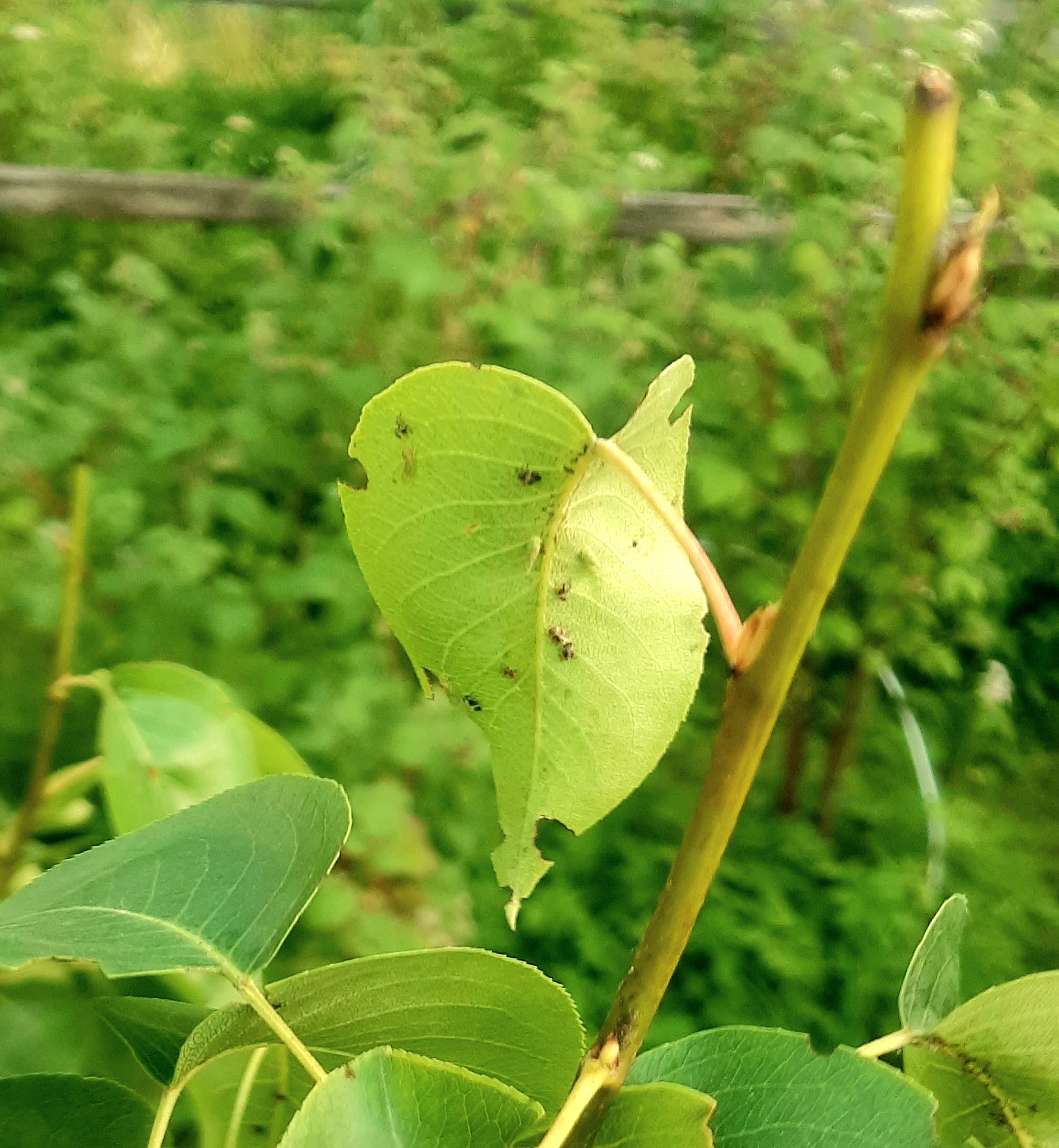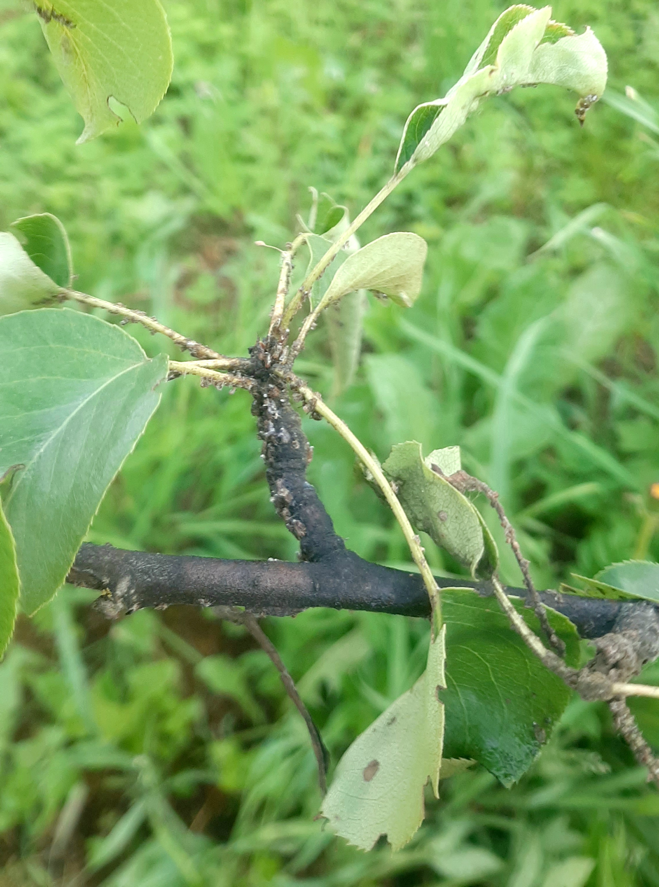 Добрый день, если еще нет плодов, то я бы опрыскала чем-нибудь системным, Актарой или Би-58 ...