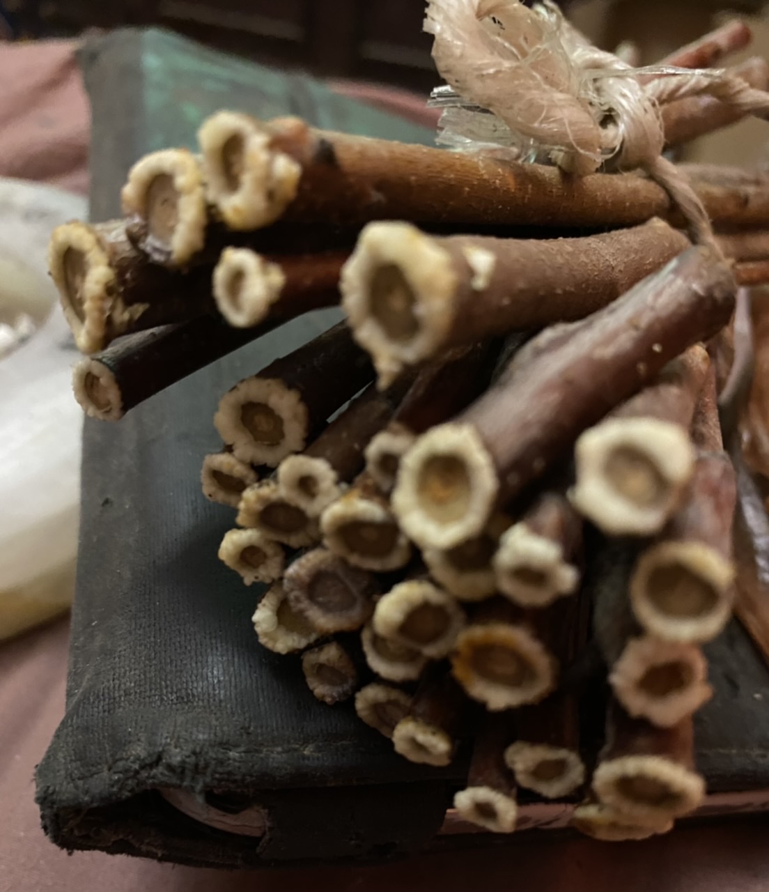 Вот результат месяца в холодильнике, в пакете, после того, как по инструкции Стаховского (поставщика черенков), наметился зелёный конус раньше, чем стал образовываться каллус. В срочном порядке я переместил черенки в +7, в темноту.