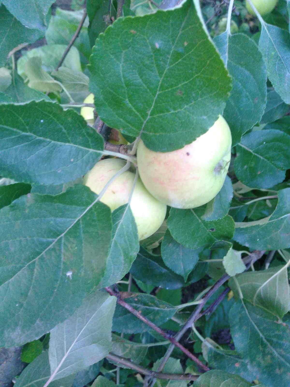 В дополнение к моему посту прилагаю еще три фото. Яблоки и листья на дереве и само дерево.