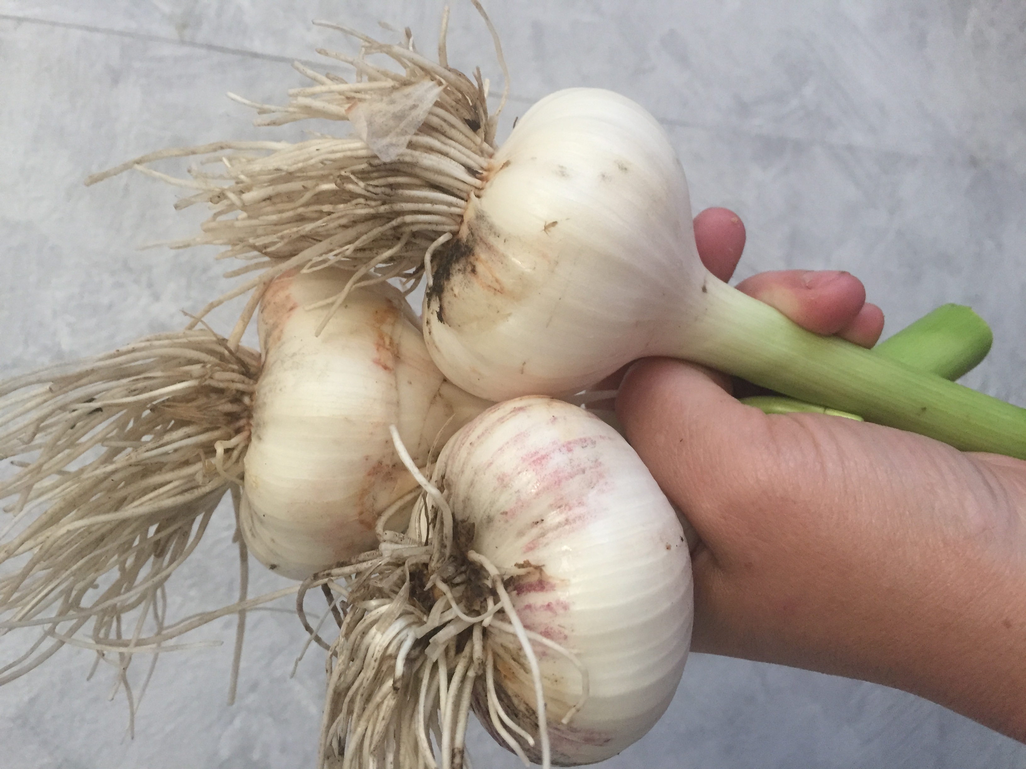Стрелка ещё не выпрямилась, кожица ещё молочная, хотя чеснок не плохой.