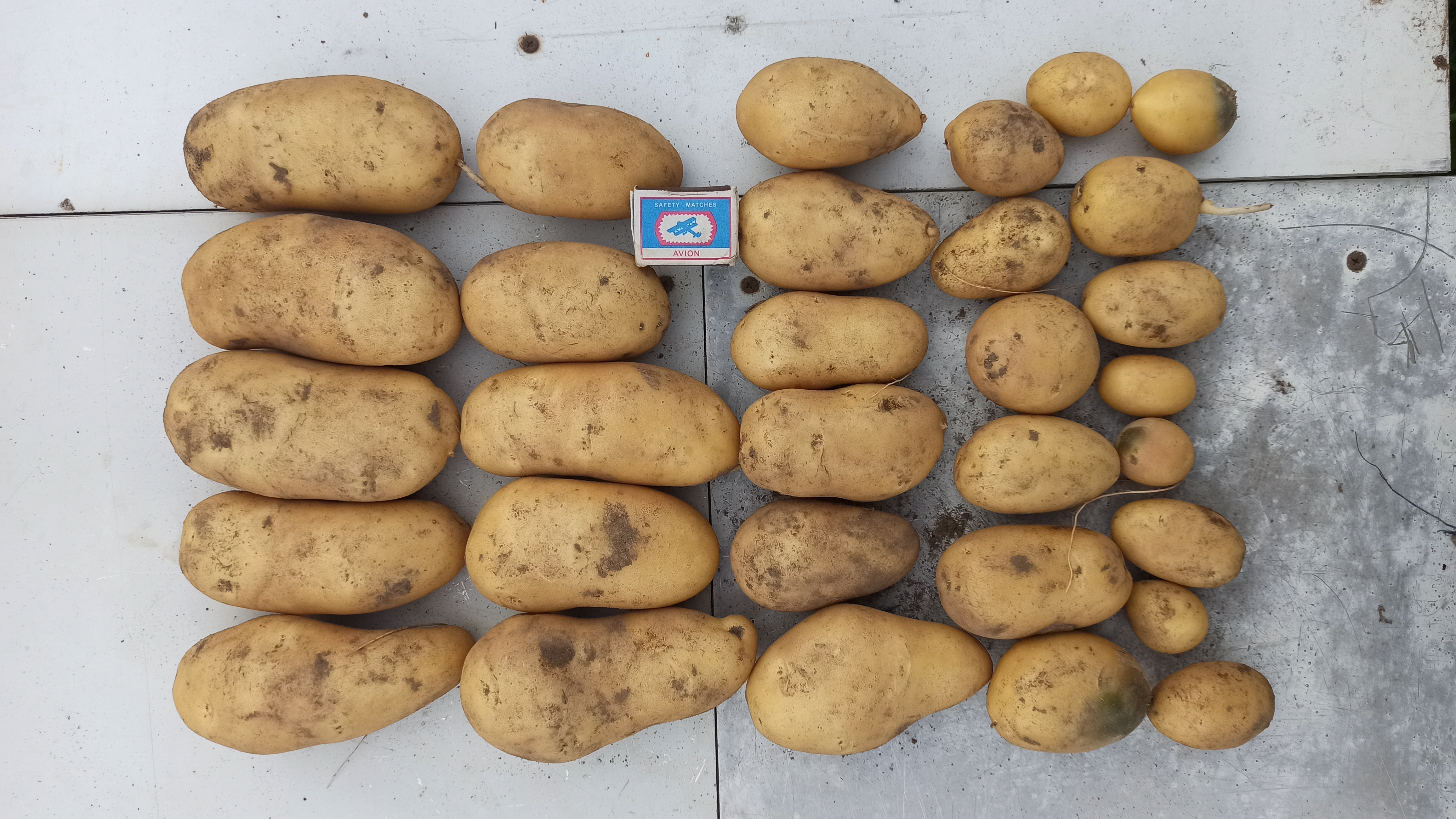 Попробовал этот сорт. Урожайность очень высокая. Устойчив к фитофторозу. А вот на вкус по мне НИКАКОЙ. Еще разок попробую для вырастить для кур. На фото урожай из 28 картошин. Три кустика выкопали на пробу до уборки. Ведра по 20 литров.