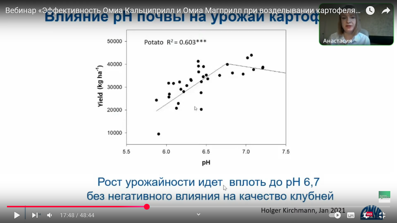 Для справки. При pH=9 урожайность неповреждённых товарных клубней составляет около 4 кг/м2 с процентом паршивых клубней около 4-8% от общего урожая