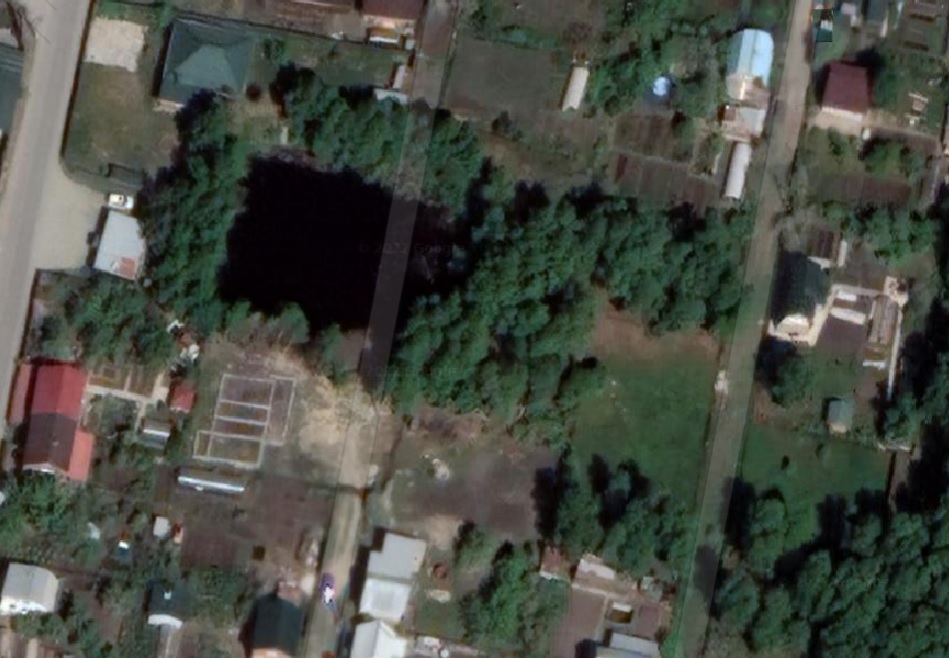 Данный карьер со всех сторон огорожен участками, есть только несколько узких проходов между заборами шириной не больше метра, что исключает проезд любой техники. Собственно, вот спутниковый снимок (на лесок справа не обращайте внимания, там уже тоже всё огорожено). Этот карьер очень выручает в годы, когда грунтовые воды уходят из колодца (он у нас глубиной 5 метров, но иногда и этого не хватает).