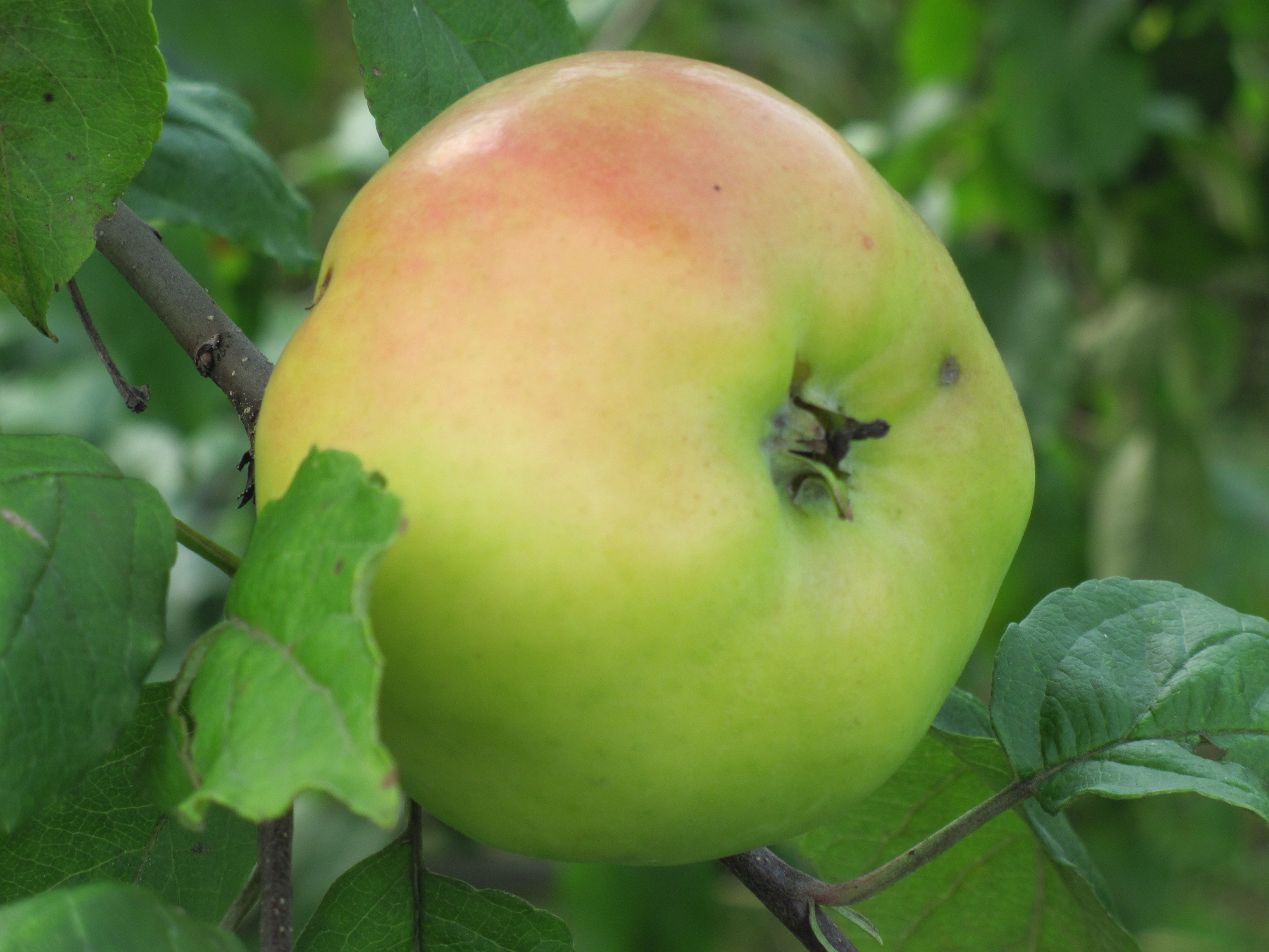 Что за сорт так пока не определил. Какой-то старый, раннеосенний, черенки брал с очень древнего дерева в Белоруссии. В обычные годы к этому времени уже созревает. Вот так