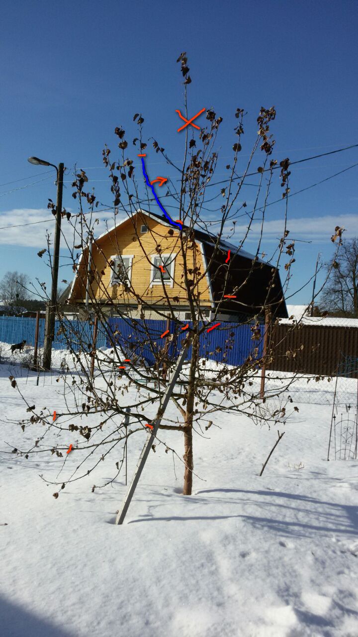 Masik, Zener, спасибо большое! Аспрус прочла, буквы знакомые, но...Трудно мне, в общем. Буду перечитывать еще. Скажите пжт, я синей стрелкой пометила - это удаление конкурента? длинной, почти вертикальной ветви, идущей сейчас параллельно стволу? Если да, то его пеньком оставлять или на кольцо?