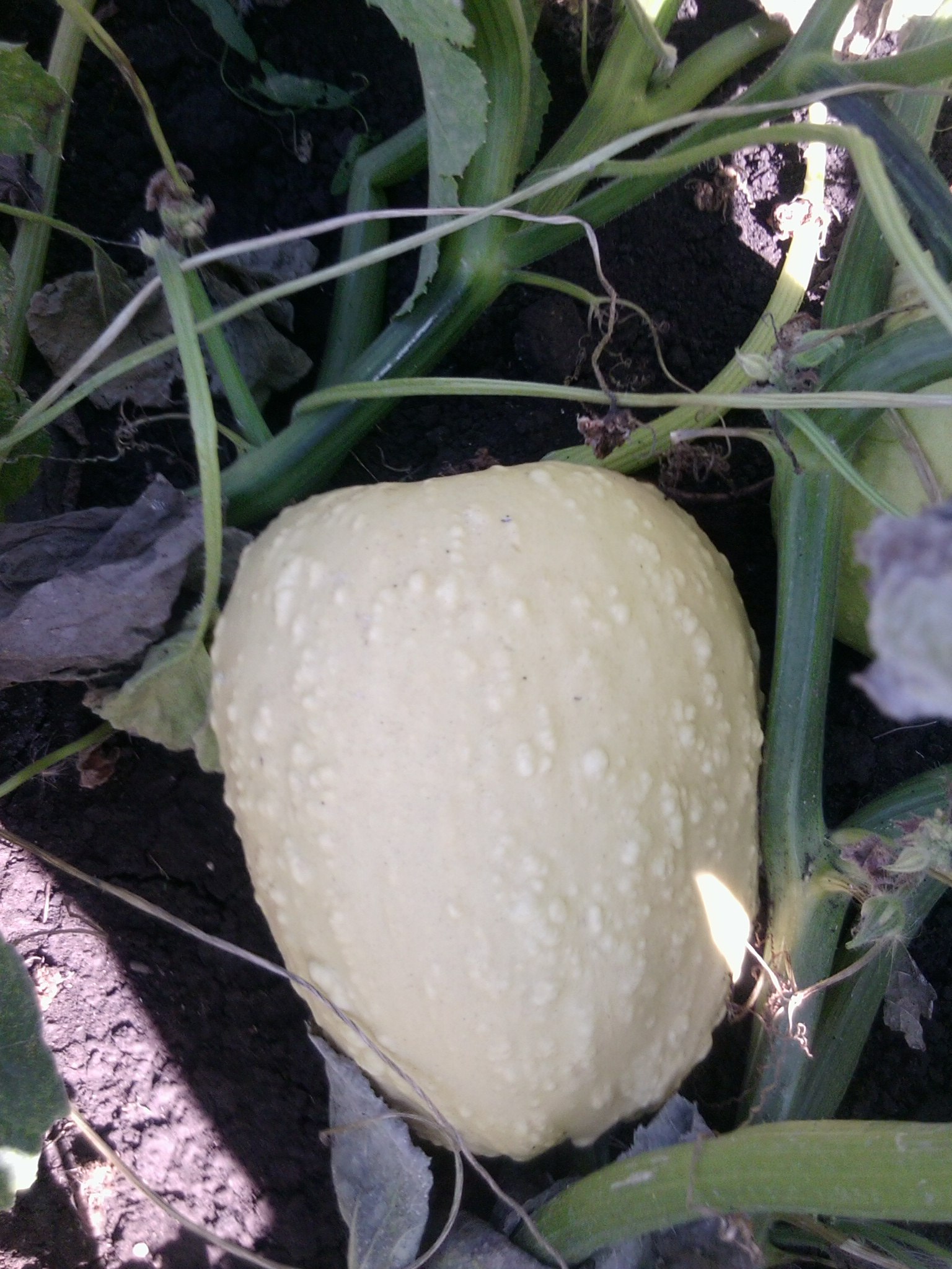 А это на сегодня у меня две такие тыквы выросли из СЗ этого года. название не помню. Сажала первый раз поэтому ничего не могу сказать про вкус и т.д.