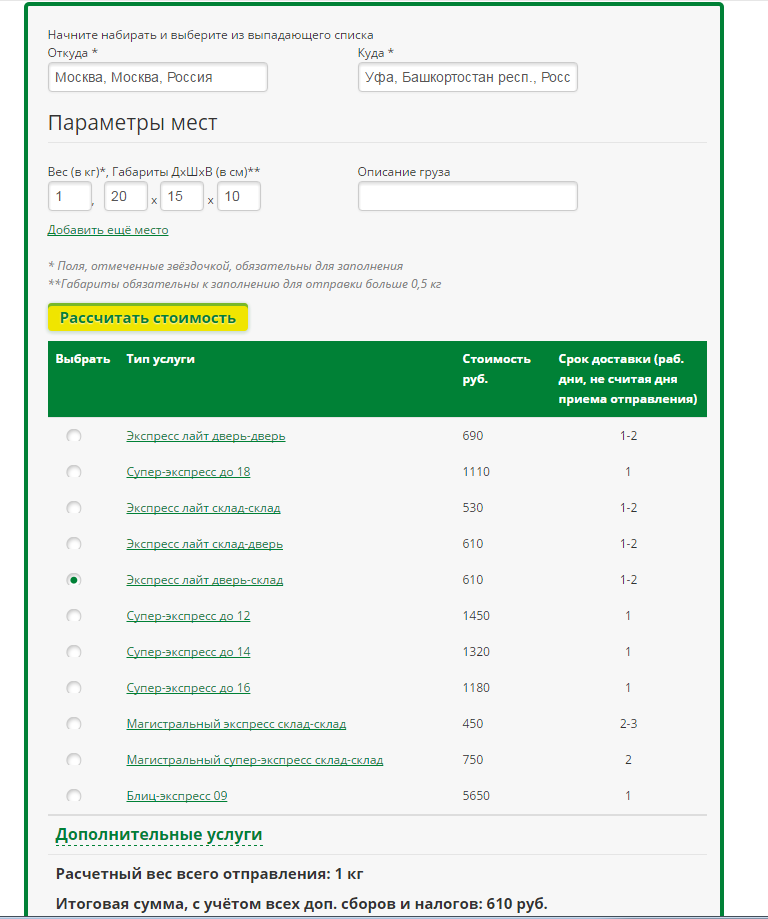 Здравствуйте. А кто-нибудь в СДЕК проверял сумму доставки? Я в онлайн калькуляторе проверила. Внесла данные на 1 кг и приблизительные габариты коробки 20*15*10 см. Хотя мои 150 корней намного больше будут весить.Доставку смотрю от двери(наверно от оргов курьер будет забирать) и до терминала. Остальные цены там тоже видно. Ну вот что получилось. По мне так не дешево, но сроки радуют.