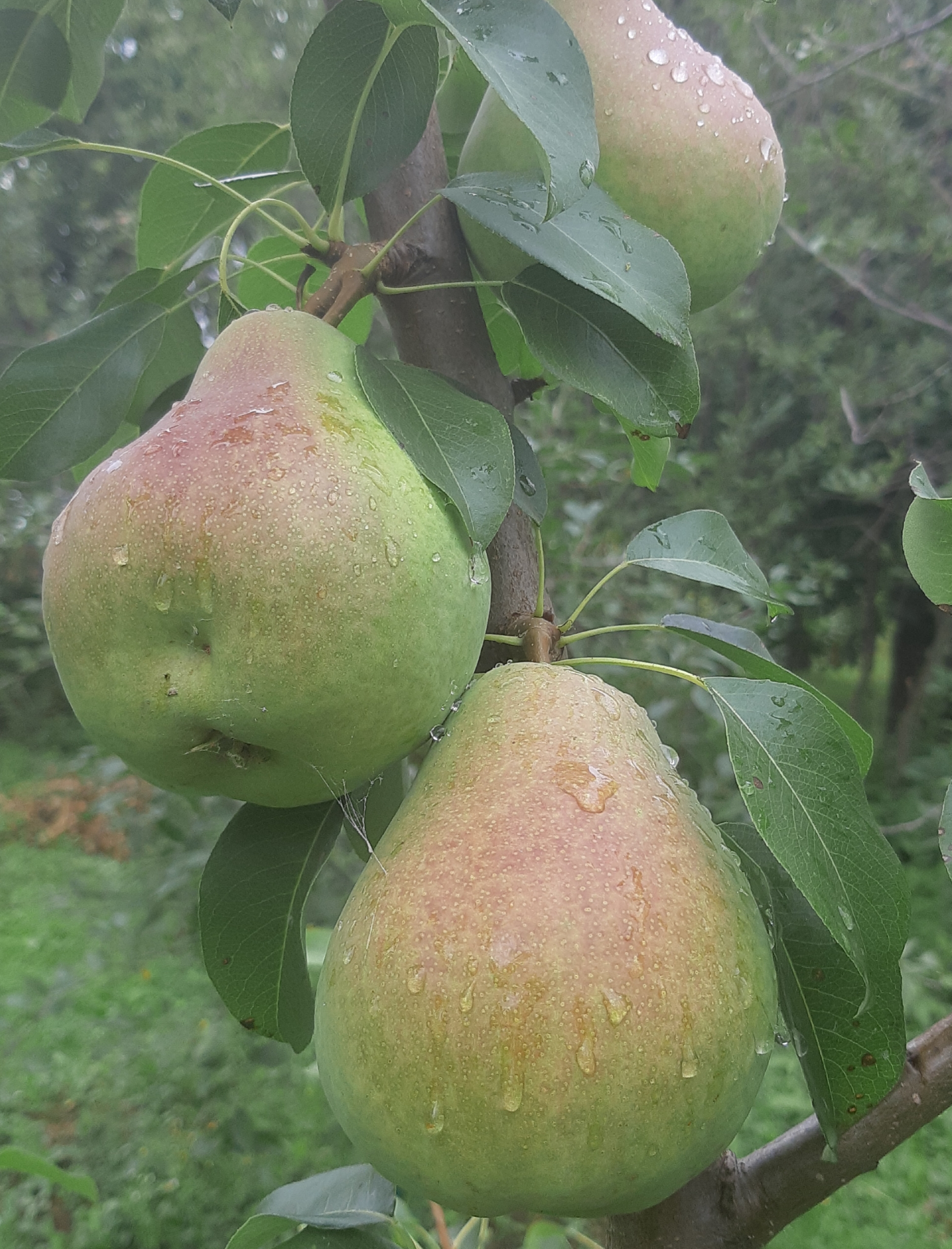 Нынешний год обязательно запомнится хорошими урожаями многих культур. Не остались в стороне яблони и груши, порадовали крупными плодами в больших количествах. Две моих старших груши Видная и Велеса (10 лет) и вовсе пошли на рекорд. Но очень примечательна реакция сортов на особенности сезона. Видная словно не заметила длительной жары и созревает в свои обычные сроки. А вот Велеса уже практически полностью готова, примерно на полторы-две недели раньше, чем в прошлом году. Такого ещё ни разу не было, чтобы сорта менялись местами в последовательности сбора урожая.