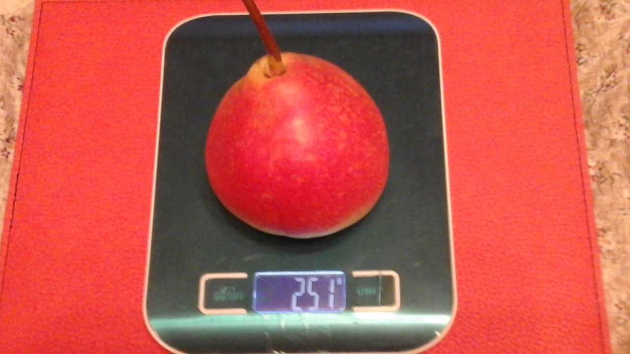 По вкусу на уровне Чижовской, 4,2-4,3.Созревает неравномерно, в течение месяца можно есть с дерева, не осыпается. Проигрывает по вкусу и размеру Августовской Росе, но раньше созревает. У АР семечки только начинают коричневеть.